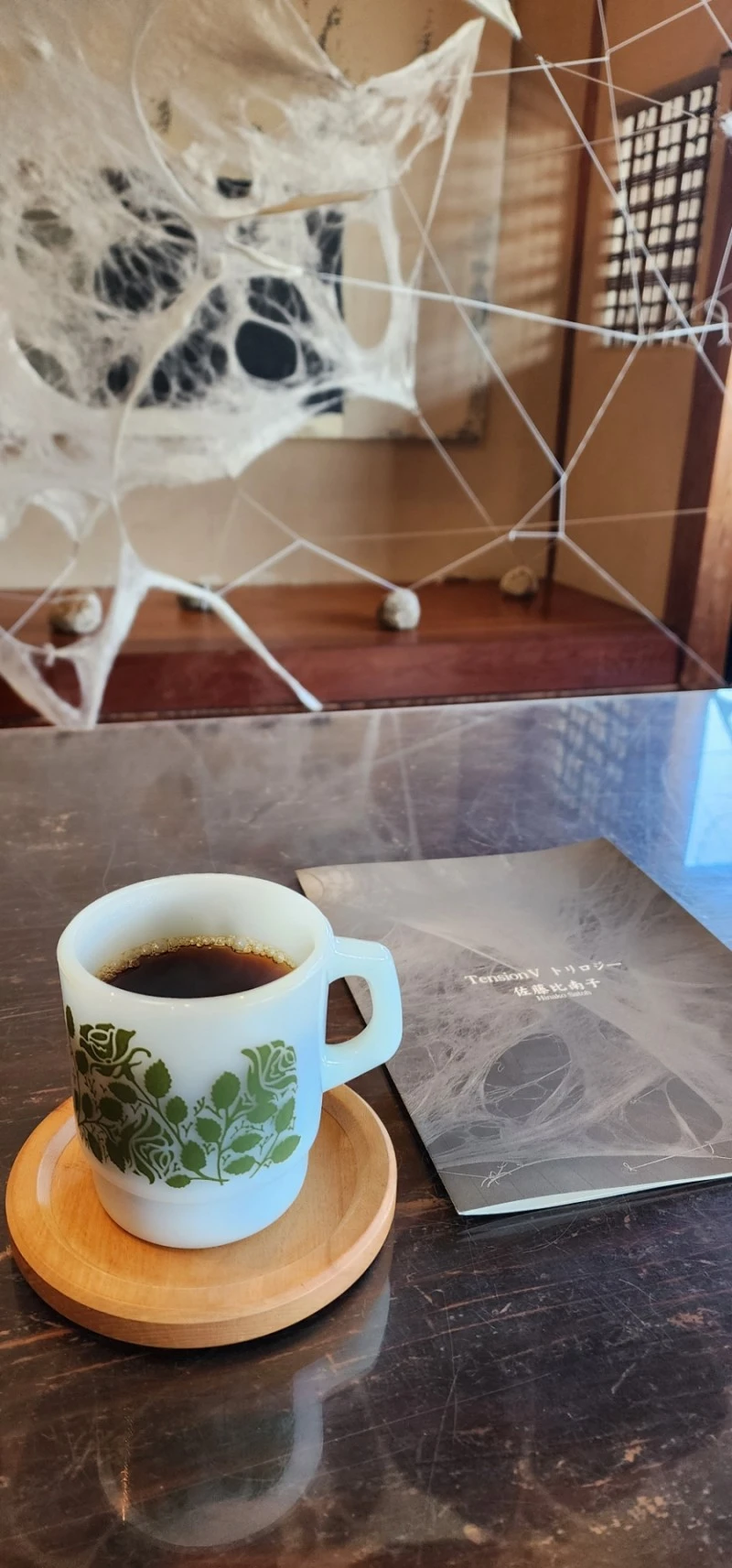 드디어 써빙된 커피, 갤러리 카페니까 커피잔에 대한 기대가 있었어요. 그런데 놓여진 잔은 다소 투박하네요. 가파른 계단을 오르락내리락 거리는 직원분의 노고를 생각하면 불만 없이 마셔야겠어요. 홋또 코-히 마셨으니 몸에도 좀 온기가 돌아야 하는데, 좀처럼 훈훈해지지 않더라고요. 왜냐하면 여기는 바닥 난방이 없는 일본 고민가거든요.