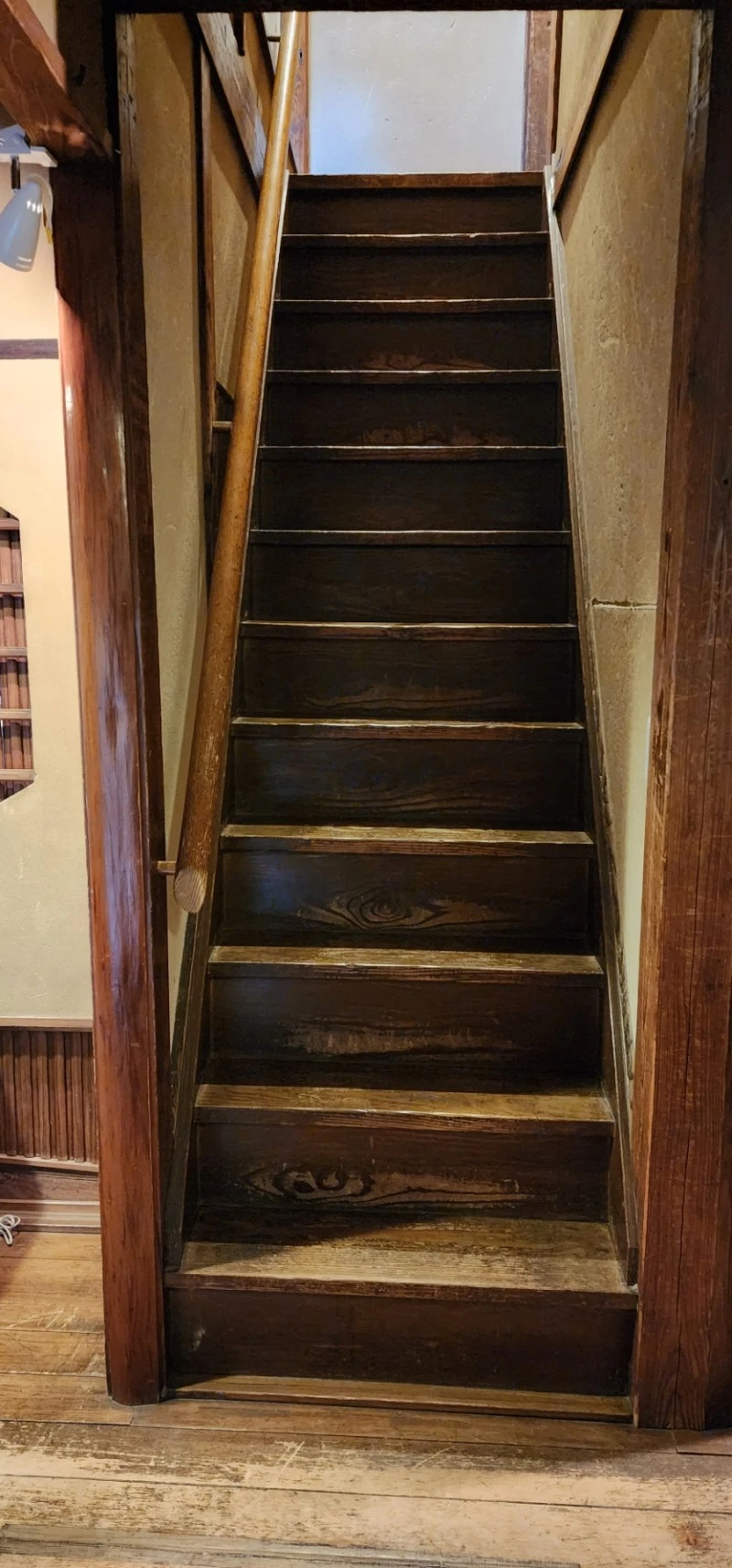 카페는 어디일까 둘러보니, 바로 이 폭이 좁고 가파른 경사의 계단 위 2층이 카페라고 합니다. 1층에서 커피 주문과 계산을 하고, 2층에서 앉을 좌석까지 선택하고 이 계단을 오릅니다. 발바닥도 시리고, 무르팍도 시린 계단입니다만, 일본의 옛 성이나 고민가에 가면 피할 수 없는 스타일의 계단입니다. 2층에는 작지만 여러 형태의 좌석을 구비해 놓았더라고요. 전통 좌식과 더불어 디자인이 돋보이는 목재 테이블석, 스미다 강을 조망할 수 있는 창가 카운터석, 나란히 꽁냥 거릴 수 있는 소파석 골고루 준비되어 있었어요. 저는 일본 고민가 카페 체험이니 만큼 좌식테이블을 선택했습니다.