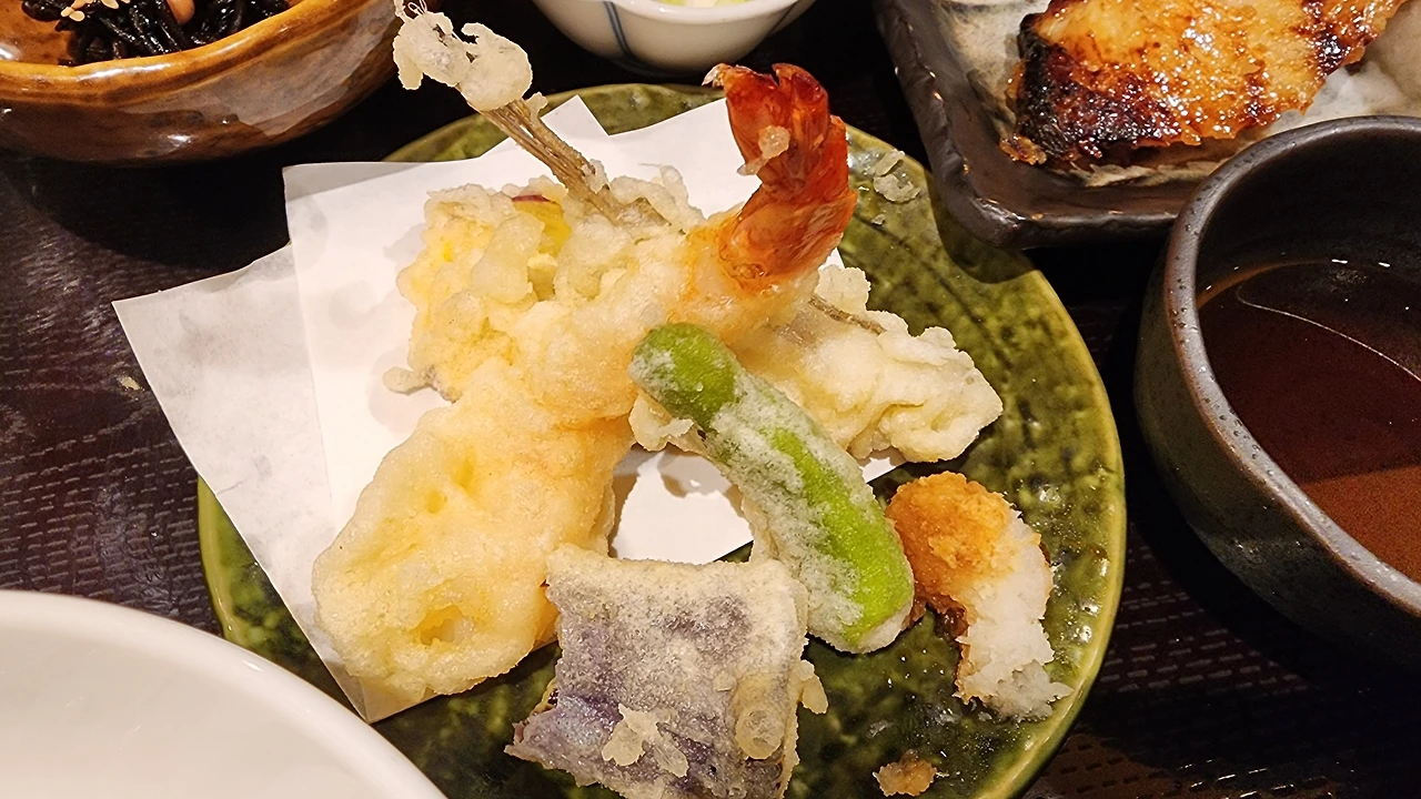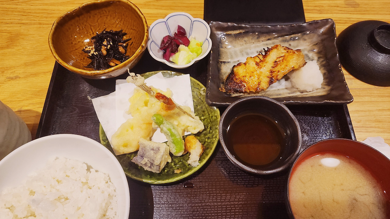 일본 정식, 은대구(긴다라)구이와 덴푸라 정식위치: Aoyuzu Tora Toyosu