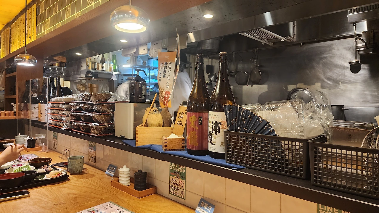 그래도 살살 녹는 은대구 한 입에 고슬고슬한 하얀 쌀밥에 요 긴다라 구이는 일품입니다, 특히 오늘의 식당은 니이가타라는 쌀이 맛있는 곳으로 유명한 지역의 품종은 고시히까리라는 쌀로 지은 밥이었지요. 미소시루로는 조금은 고급지게 미역이 아닌, 재첩 된장국이였고요. 이곳의 밥이랑 미소시루는 오까와리(리필) 가능!! 오늘 저도 이렇게 말했죠.
