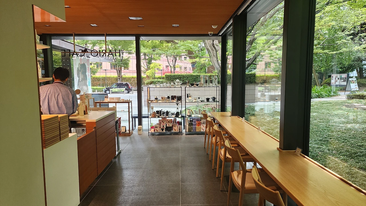 이곳은 롯폰기 잇쵸메의 초록을 듬뿍 머금은 HARIO CAFE입니다. 드립 커피 도구로 유명한 그 HARIO 에요.