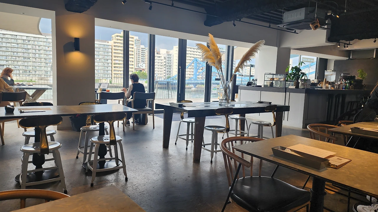오늘 도쿄의 런치는 스카이트리와 강변이 보이는 카페에서 가볍게 크램차우더 수프와 빵 세트메뉴로 픽해보았습니다.