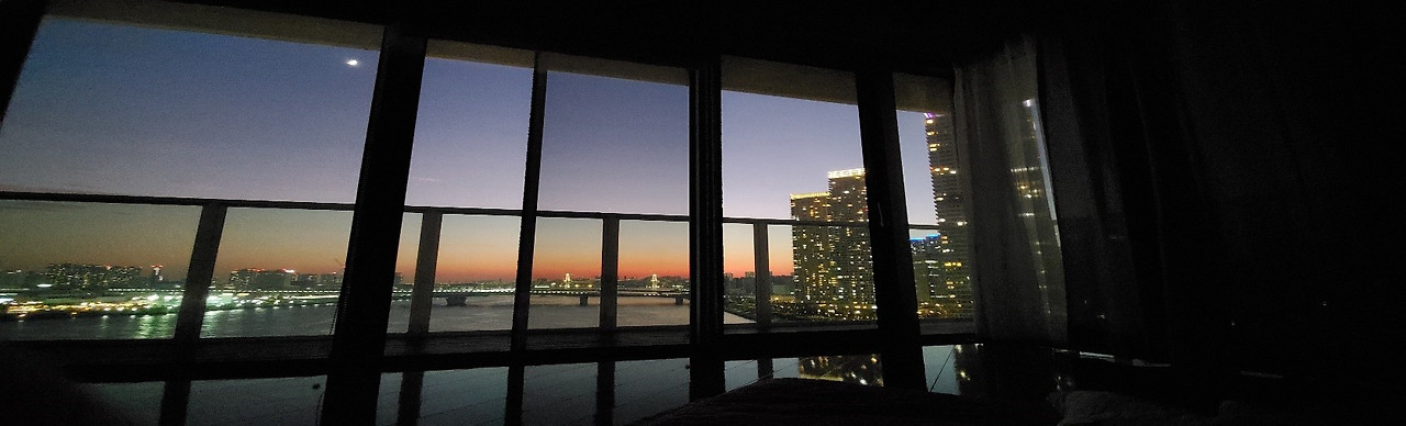 이렇게 멋진 장관과 함께 우리 가족은 토요스에서 지냈습니다. 지금 돌아보니 정말 멋진 시간이었네요. 그때 당시에는 이곳이 앞으로 4년 동안 우리 집 거실의 배경화면이 될 줄은 몰랐습니다. 집 옆에는 ‘라라포트’라는 쇼핑몰도 있고, 밤이면 반짝반짝거리는 레인보우 브릿지와 함께 펼쳐진 하늘을 보면 힐링이 절로 됩니다. 그리움이 가득합니다… 너무 그리운 순간들이에요…
