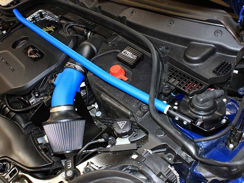 가장 기본적인 차체 보강 제품으로는 이미 많은 차량에 제공되고 있는 스트럿 브레이스 또는 스트럿 바입니다. 사진과 같이 서스펜션 마운트 사이에 장착하는 바입니다. 코너링을 할 때 서스펜션 마운트로 가해지는 힘을 차량의 중심으로 모아주며 휠이 최적의 각도를 단단하게 유지해 핸들링을 향상 시킵니다.