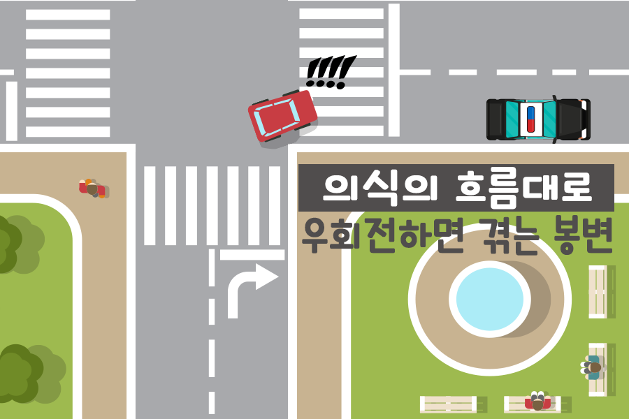 좌회전과 유턴은 전용 신호가 있지만 우회전의 경우 전용 신호가 거의 없다. 운전자의 판단력이 무엇보다 중요하다. 베테랑 운전자라 해도 복잡한 교차로에서 뒤차의 따가운 시선 공격을 완벽히 방어하기란 쉬운 일이 아니다. '우회전은 어떻게 분노를 유발하는가?', '우회전 뒤차의 경적, 어떻게 볼 것인가', '우회전 숨은 단속 경찰 찾기' 등의 강좌 개설이 시급하다.