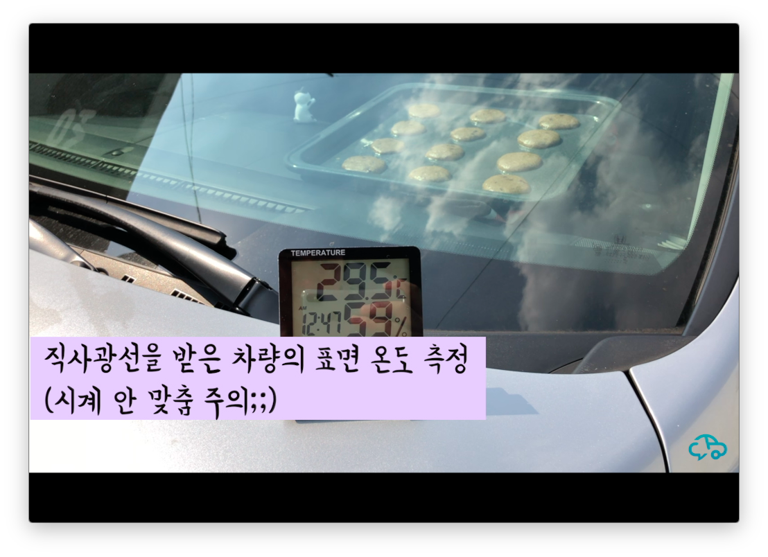 보닛에 반사된 햇빛이 너무 따가워서 도저히 참을 수 없어 온도 측정 10분 만에 촬영을 포기했다.