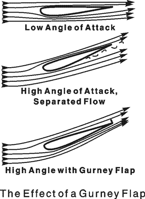 거니플랩은 더 큰 다운포스가 필요한 레이싱 경기에서 많이 사용되는데요. 윙의 각도가 커지게 되면 윙 윗면에서 누르는 힘은 커지게 되지만 윙 밑면에는 불규칙적인 공기 흐름으로 저항이 발생하게 됩니다. 이는 윙 윗면의 높은 기압이 아랫면의 낮은 기압을 제대로 눌러주지 못하기 때문입니다.