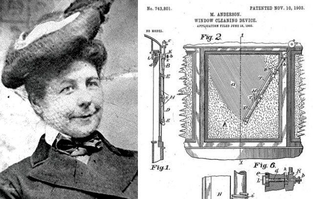 1902년 뉴욕을 방문한 매리 앤더슨은 여행 중, 차량 앞 유리에 쌓인 눈을 치우기 위해 운전기사가 주기적으로 차량에서 내리는 것을 목격한다. 그날 이후 앤더슨은 고무가 부착된 스퀴지에서 영감을 받아 차량 내부에서 와이퍼 레버를 작동시켜 유리의 이물질을 제거하는 최초의 와이퍼를 1903년에 발명 및 특허 등록한다.