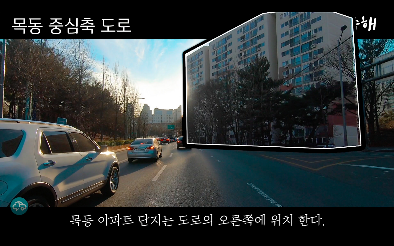 도로 오른쪽에는 목동 아파트 단지로 연결됩니다.