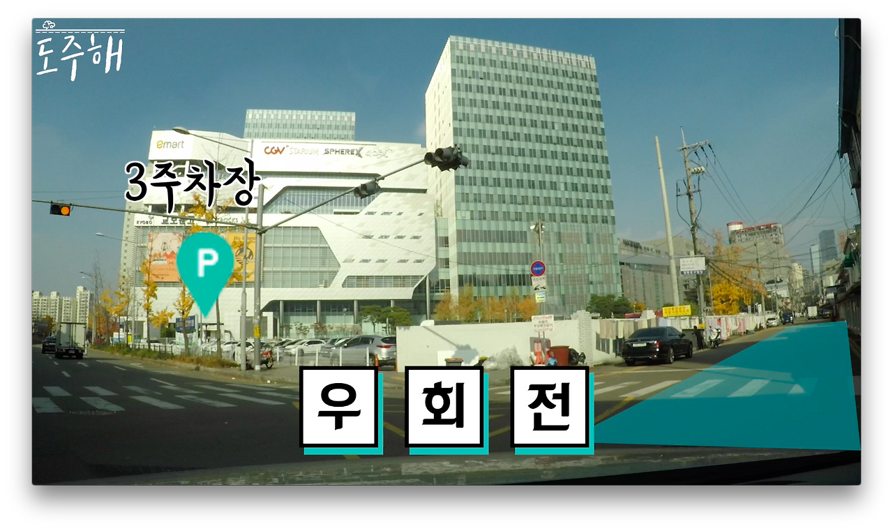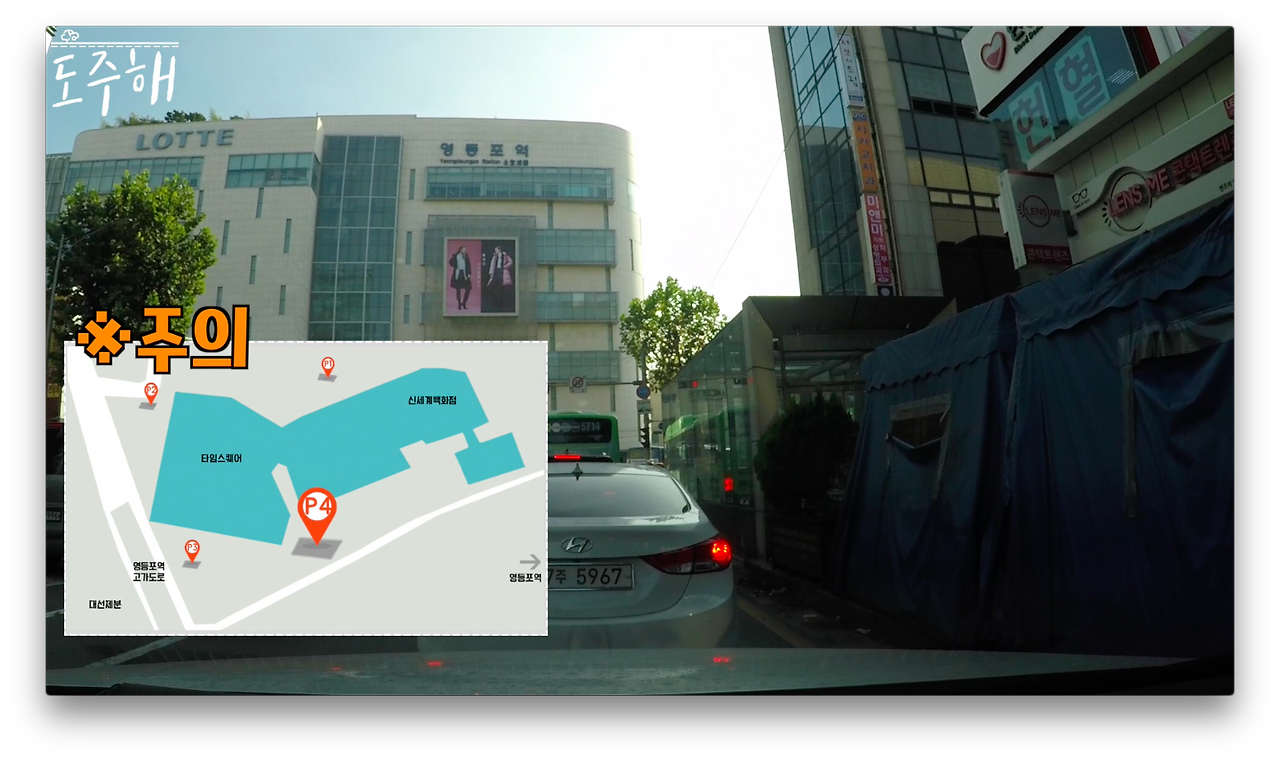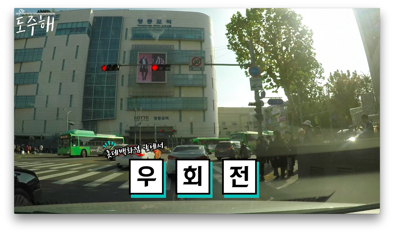 롯데백화점 앞, 영등포 삼거리에서 우회전!