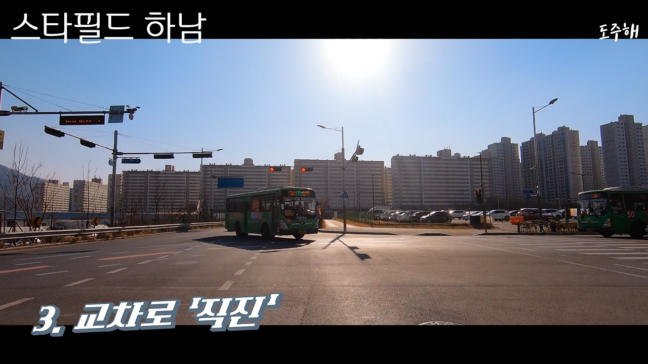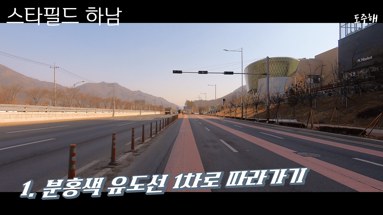 대부분 분홍색 유도선 오른쪽 2, 3차로에 몰리기 때문에
