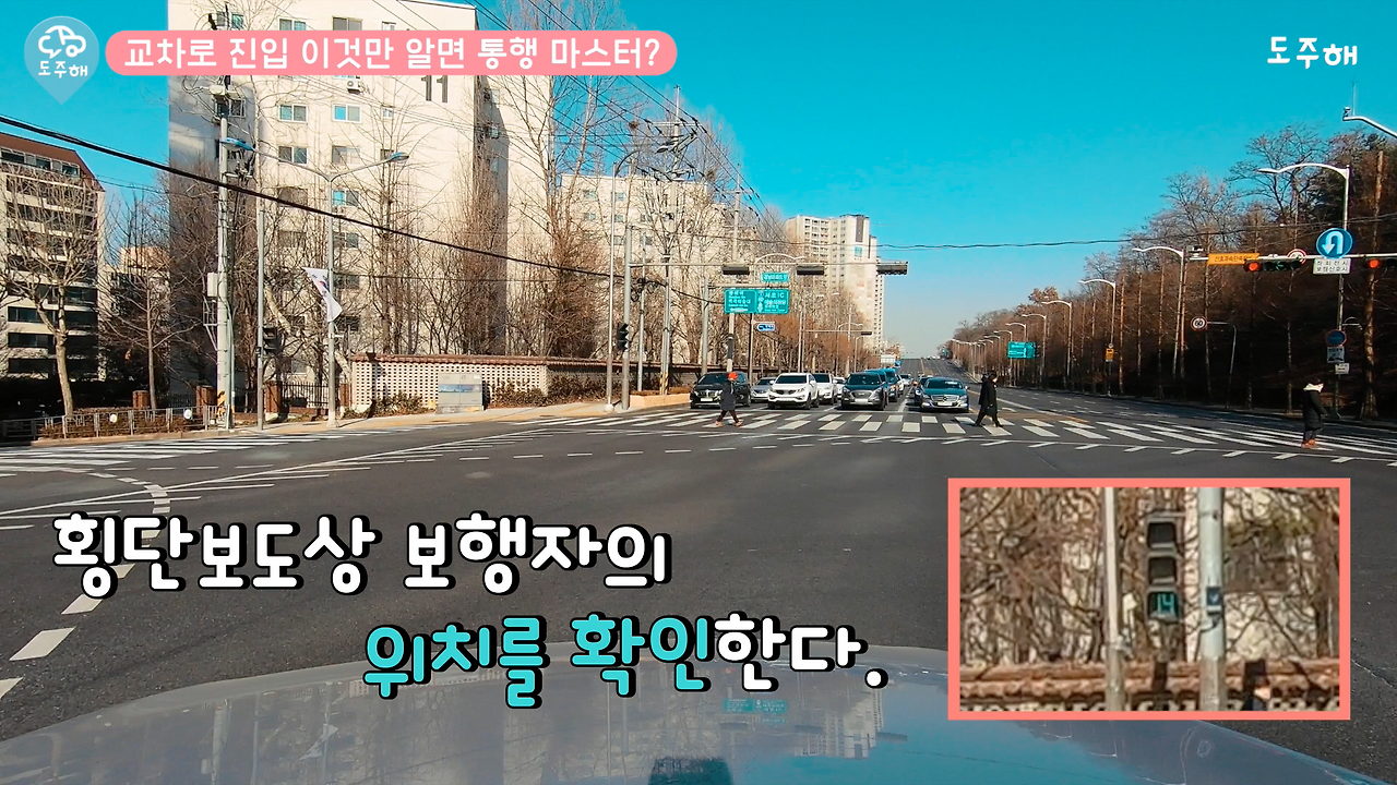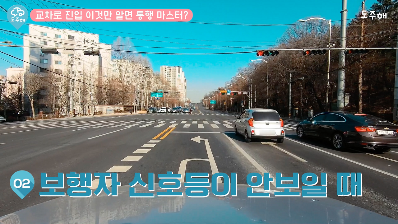 보행자 신호 시간을 보고 만약 변경 직전이라면 무리한 교차로 진입보다는