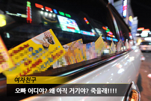 노상 주차를 하게 되는 경우 각종 스티커, 전화번호, 음란물 등 덕지덕지 붙어 있다면 여성분을 만나기 전에 전부 떼어낼 것! 오해를 불러일으킬 모든 것들을 원천 차단합시다! '오빠 어디야?' 맨날 듣고 시펑?