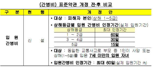 부모 중 한 명이 사망 또는 중상해를 당한 만 7세 미만 자녀가 입원한 경우도 간병비를 최대 60일까지 지급한다고 합니다.