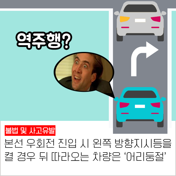 진입하려는 방향에 맞게 방향지시등을 켜면 되는 아주 쉬운 일이다.