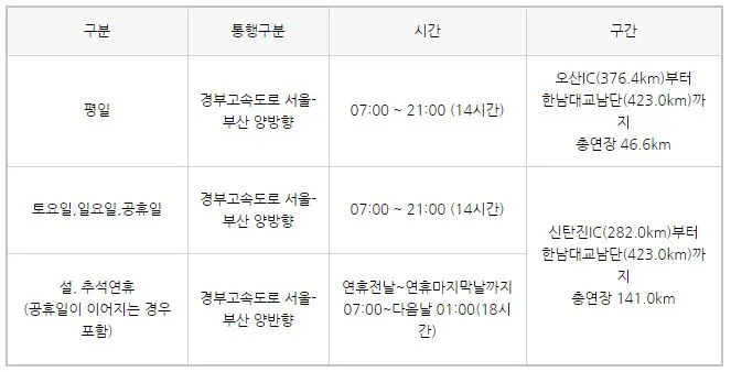 국내에는 영동고속도로, 경인고속도로, 중부고속도로, 경부고속도로 등 많은 고속도로가 있지만 버스전용차로가 적용된 고속도로는 '경부고속도로'에만 유일 합니다.