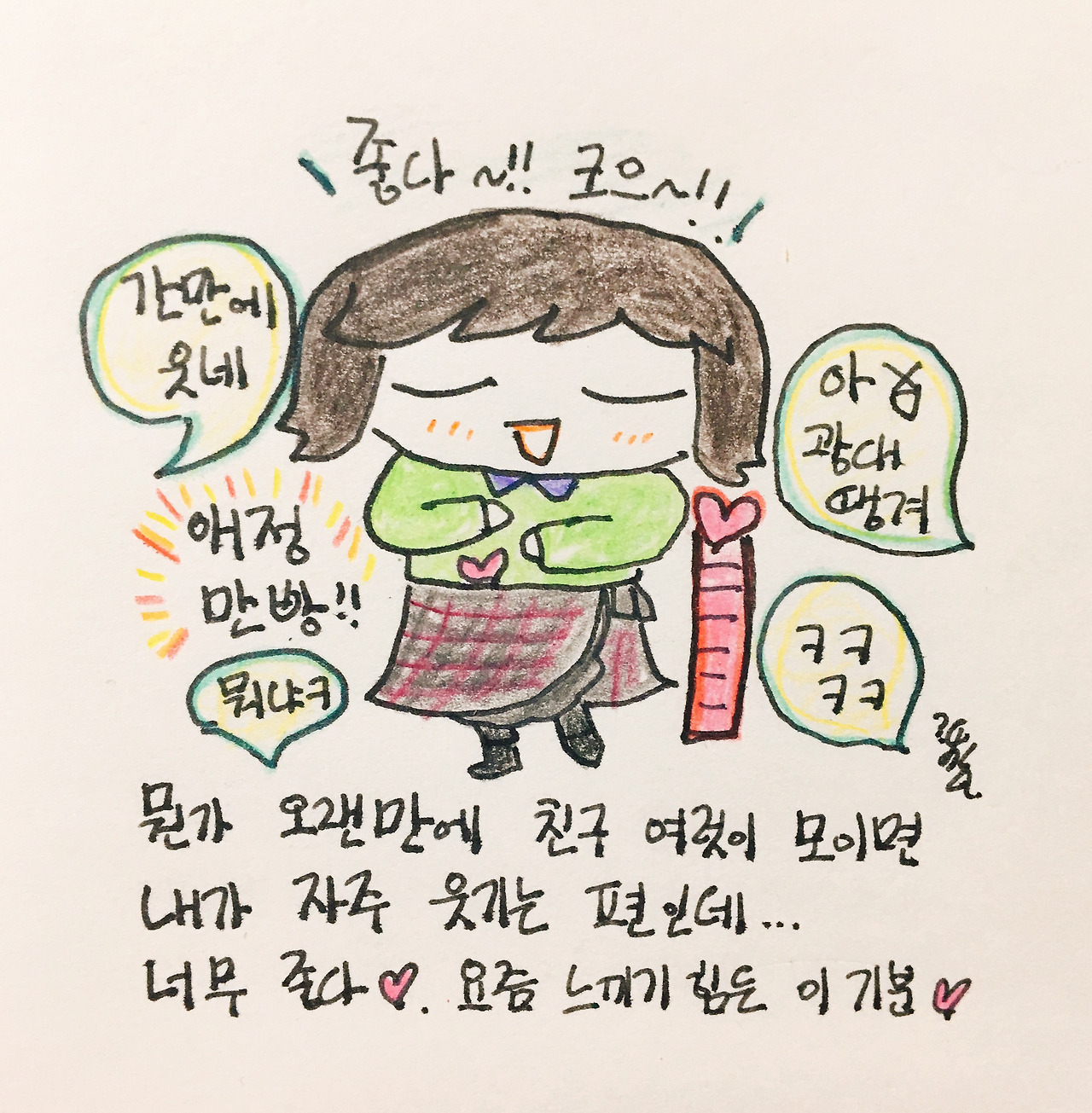 #그림일기#일상만화#인스타툰#색연필그림#웹툰#작지만커다란#작커#애정충전#친구#우정#드로잉#일러스트#주말#휴일#모임