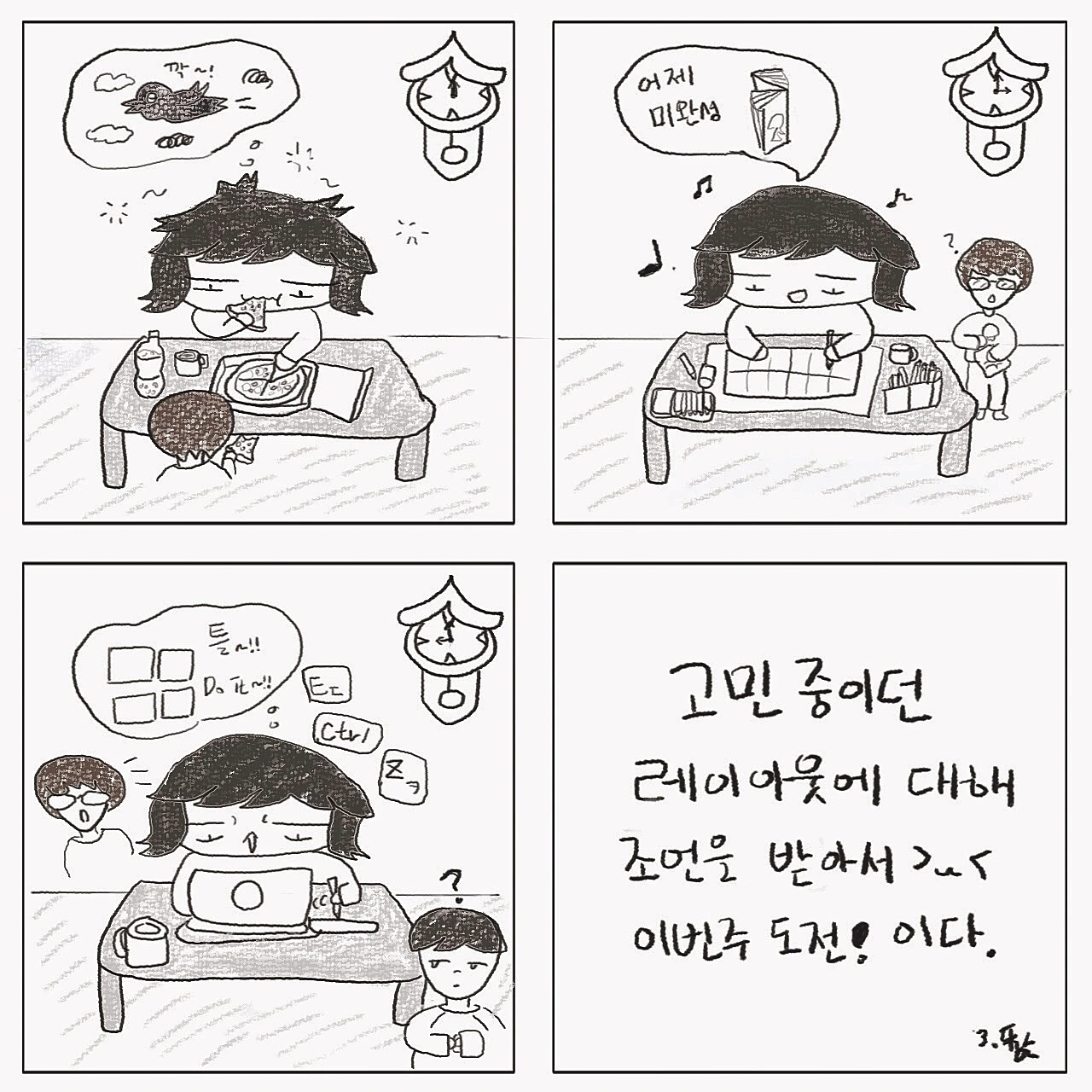 아아.오늘은 진짜 잠깐 외출한 것 빼곤 그림만 그렸당..평소 그려 올렸던 것이 십분이라면 타블렛 써보니 얼루 두시간이네..;; 백만시간의 법칙을 믿고!! 계속 하다 보면 늘겠징. 으흐흐