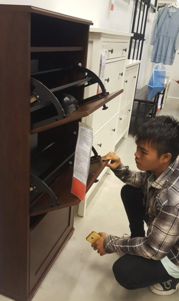 이미 6개월 넘게 정도 가구 만드는 법을 배운 아이들은 이케아 가구를 보고 흥분을 감추지 못했다. 세상은 넓고 이렇게 멋진 가구도 많구나 하는 눈치였다. 다양한 기능과 다양한 디자인, 그리고 다양한 접합 방식을 눈여겨보는 모습이 기특했다. 우리 학생들은 일반인들이 가구를 보는 것과는 다르게, 가구의 구조와 형태를 여러 각도에서 관찰하였다. 학생들에게는 2가지 미션이 있었다. 하나는 오늘 본 가구 중에서 마음에 드는 가구를 하나 고르고, 왜 마음에 들었는지 그 이유를 말할 수 있어야 한다. 그리고 나머지 미션은 본인이 자유 주제로 만들 가구의 아이디어를 얻는 것이다.