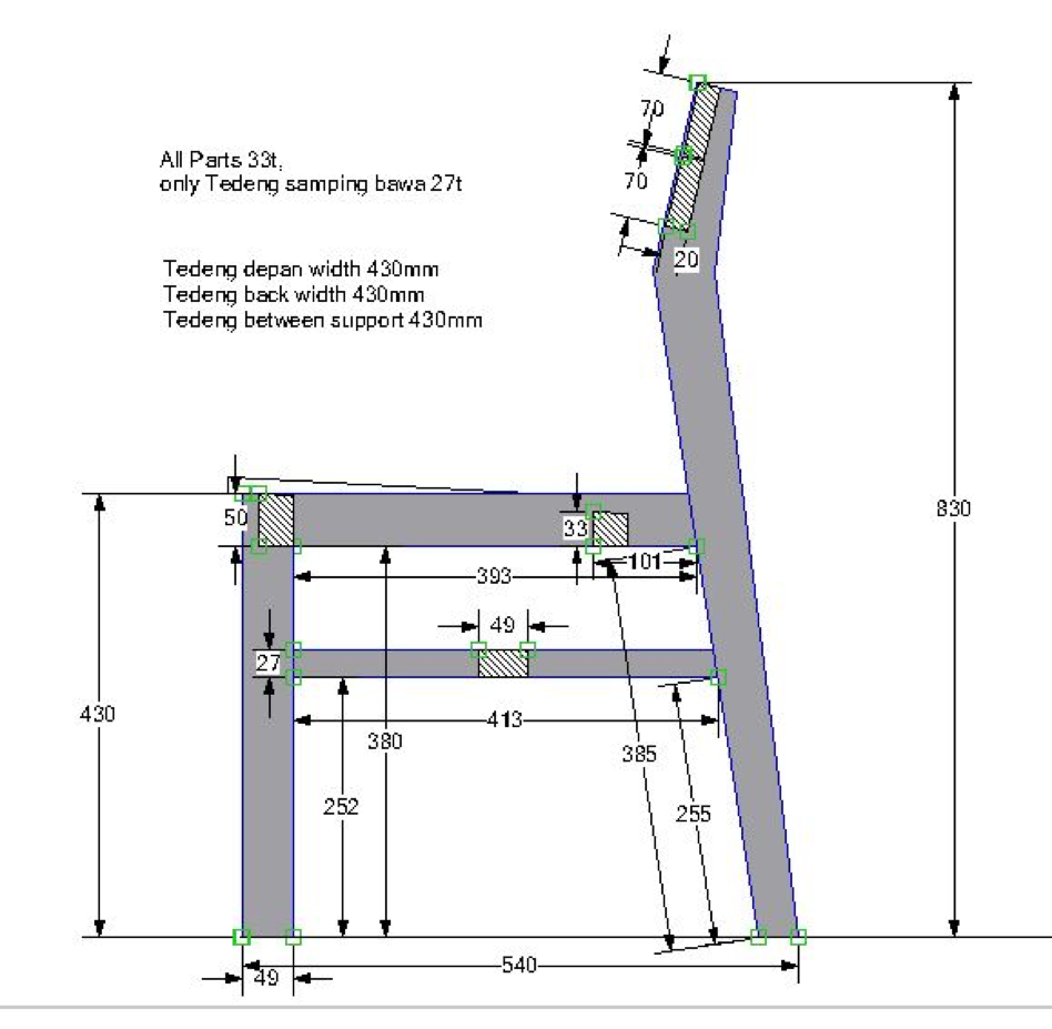처음에 우리 아이들은 이 숫자가 얼마나 큰 나무 조각을 의미하는지 모른다. 설명을 해줘도 이해를 하는 것 같지가 않다. 하지만 숫자들을 반복하다 보면 나중에는 '아, 36mm가 대략 이만한 두께구나' 하면서 느낀다. 길이 단위와 숫자의 크기를 정확히 이해는 못 하더라도 느낄 수 있으면 된다. 나는 인도네시아에 와서 대학교를 졸업한 사람이 센티미터와 밀리미터를 구분하지 못하는 경우도 종종 봐왔기 때문에 우리 학생들에게 정확한 수치 단위 사용을 강요하지 않는다. 하지만 반복적으로 사용하고, 매 번 다른 가구를 만들면서 이런저런 수치를 확인하고 또 확인하다 보면 결국엔 학생들도 숫자의 크기를 어렴풋이 느끼게 된다. 그럼 된다. 여기서는 그 정도면 된다.