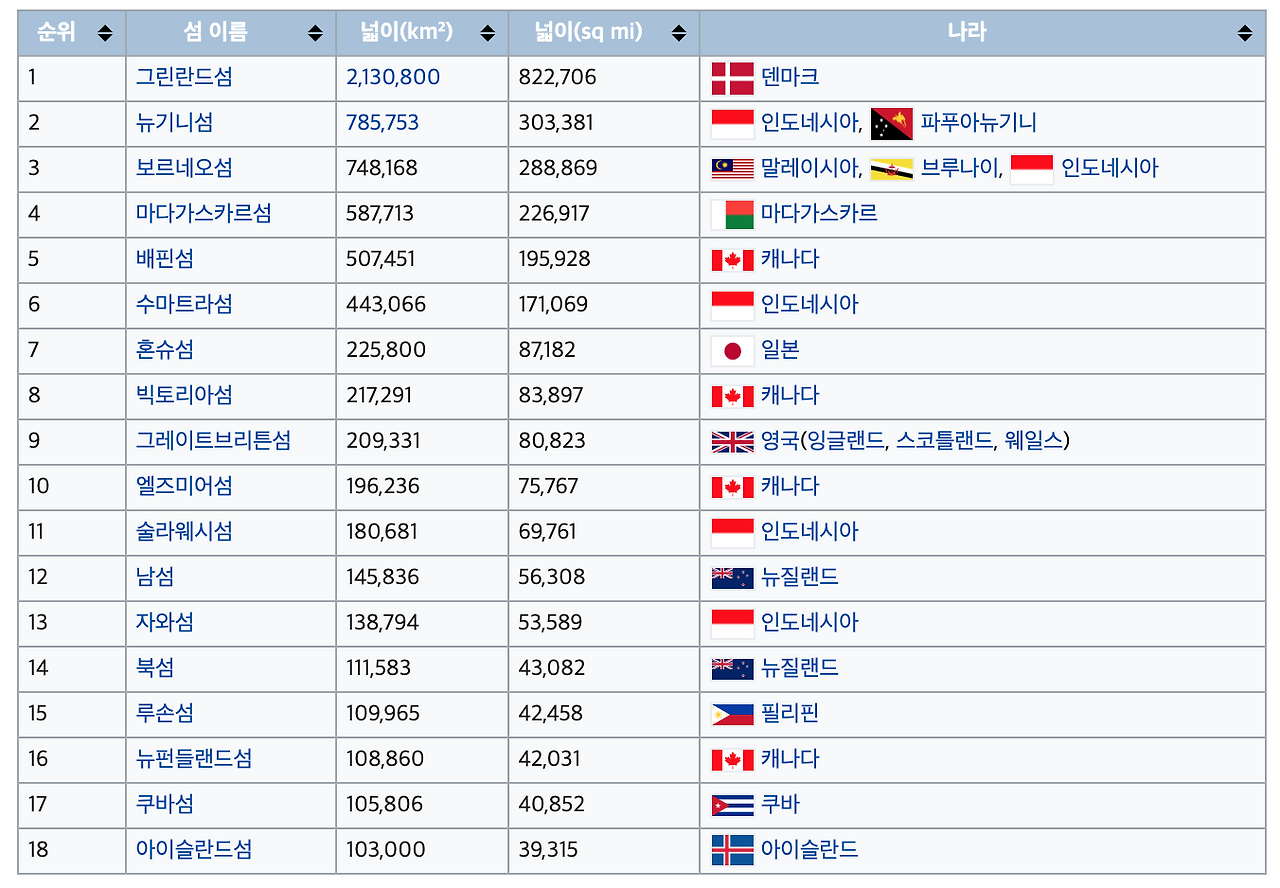 세계에서 가장 큰 섬은 그린란드다. 얼마 전 도널드 트럼프 미국 대통령이 그린란드를 사고 싶다고 했더니 덴마크가 헛소리하지 말라며 코웃음을 쳤던 바로 그 순백의 그린란드. 그린란드는 너무 추워서 사람이 살기 어렵다. 그러니까 사실상 지구상에서 사람이 살 수 있는 섬으로 치면 가장 큰 섬이 뉴기니고, 두번째가 보루네오 섬인데, 두 섬 모두 인도네시아의 일부를 형성하고 있다. 뉴기니 섬의 인구는 약 1천만이 조금 넘는데 비해, 보루네오 섬의 인구는 2천만이 넘는다. 두배에 가까운 인구수의 차이로 추측컨데 보루네오 섬이 뉴기니 섬에 비해 크기는 조금 작지만 사람이 살기에는 더 적합한 환경을 가졌다고 볼 수 있다.