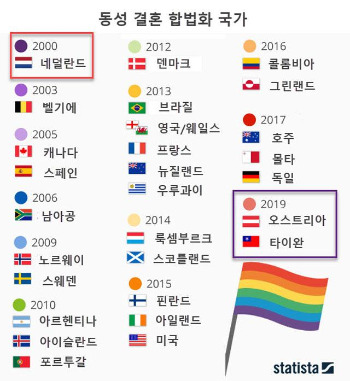 전세계 성인의 2.7%가 동성애자다. 전 세계 28개국에서 동성애 결혼을 합법화시켰다. 네덜란드를 시작으로 최근(19년) 아시아 최초로 대만이 동성애 결혼을 합법화 시켰다. OECD(경제협력개발기구) 국가 중 20번째로 호주가 2017년 12월에 동성애자 결혼을 합법화했다.