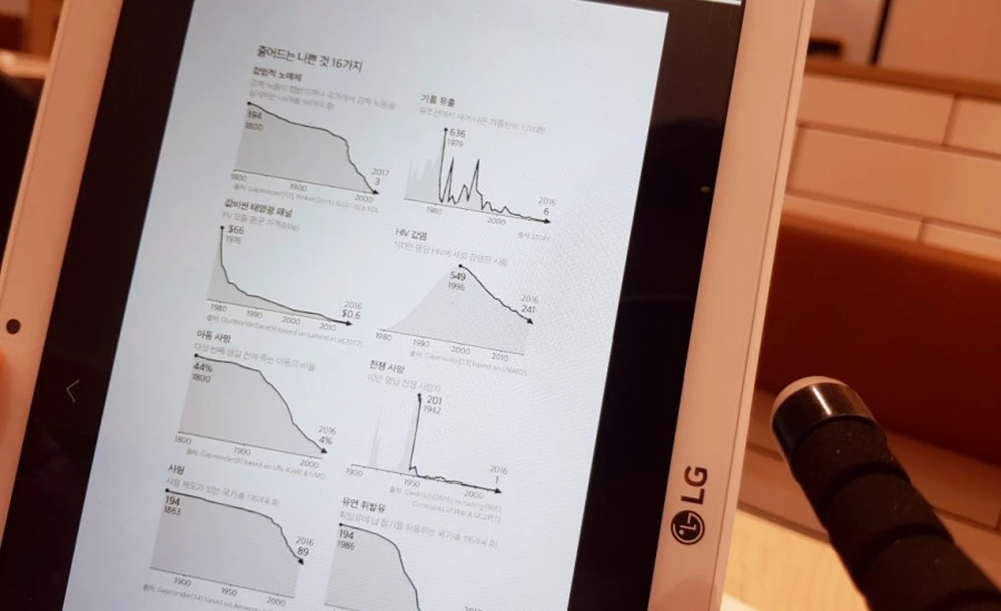 세상의 객관적인 데이터를 통해 몰랐던 사실을 알게 되는 시간이었다. 생각보다 나아진 세상에 놀랐지만 그 개선된 수치 이면에 피폐해진 인간의 내면도 수치로 증명해 낼 수 없을까 하는 여운을 남기는 시간이었다.