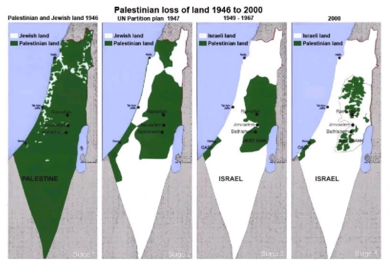 전쟁이 끝나고 영국은 발을 빼고 유대인들은 거대 자본력과 군사력으로 그곳에 살고 있던 팔레스타인을 몰아내고 이스라엘과 수도 예루살렘을 무력 점령한다. 원래 이스라엘에 살던 팔레스타인 사람들은 결국 한순간에 유랑민이 되어 가자지구로 쫓겨나고 그 분쟁은 종교적인 분쟁과도 이어져 팔레스타인을 비롯한 이슬람 국가들과도 조용할 날이 없다.