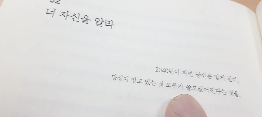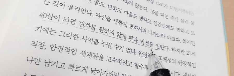 나이가 들수록 인간은 안정을 원하는 것을 어쩔 수 없는 현상이다. 하지만 이제는 변화하지 않으면 살아남기 힘든 세상이 되었다. 평생을 배움의 길에서 발을 떼어 놓아선 안된다고 얘기한다. 과거 어른들이 지나왔던 길만 답습하는 것은 위험할 수 있다. 변화에 익숙해지는 길이 가장 안정된 미래로 가는 길일지도 모른다.