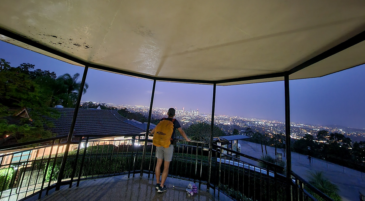고생 끝에 도착한 정상에서 내려다본 야경은 고난 뒤에 찾아온 선물처럼 느껴졌다. 브리즈번 시티에서 뿜어내는 불빛은 하늘을 가득 덮은 검은 먹구름에 난반사되어 하늘을 회색빛으로 물들었다. 비 오는 날 아무도 없는 정상에서 내려다보는 브리즈번의 야경은 그 나름은 운치가 있다.