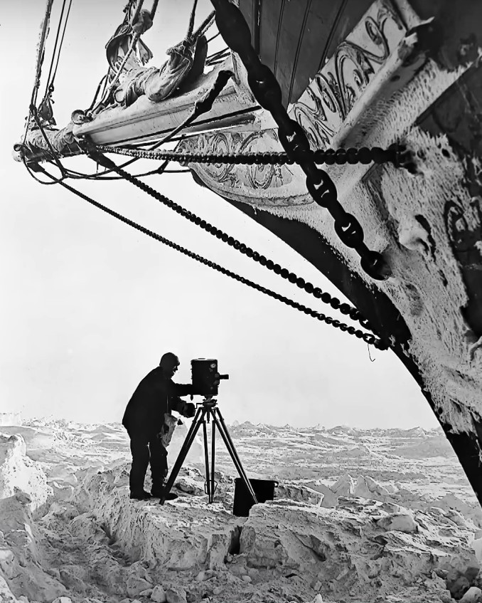 그들의 고난의 행군은 매 순간 사진으로 기록되었다. 우리는 자주 그런 경험을 한다. 카메라 앞에 서면 평소와는 다른 모습을 보인다는 것을 말이다. 누군가가 나를 찍고 있다면 나는 그것을 의식할 수밖에 없다. 이건 현재의 자신을 의식하는, 즉 자신을 들려다 보는 역할을 하게 된다. 사진기의 앵글이 나를 향하면 힘들다가도 웃게 된다. 찡그리고 못생기고 고통스러운 모습을 남기고 싶은 사람은 별로 없다. 선원들은 옆에서 사진사가 사진을 찍을 때마다 남겨질 사진 속 자신의 모습을 생각했을 것이다. 그 기록을 다시 보기 위해서라도 살아가야 했을 것이다. (당시는 찍기만 했지 인화를 할 수 없었을 것이다) 그 기록이 이곳에서 얼어버리게 놔둘 수 없었다.
