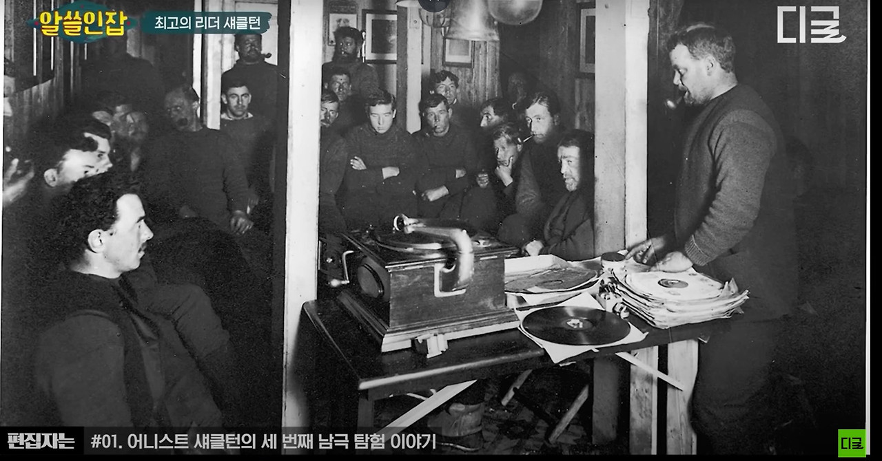 음악은 인간의 감수성을 자극하고 없던 것을 만들어내는 역할을 한다. 음악 차체가 무에서 유를 창조하는 작업이라서 일까? 이 보이지 않는 음악이라는 존재는 보이지 않는 힘을 가져다준다. 군대에서도 군악대가 따로 존재하는 것은 다 이유가 있는 법이다. 조난당한 27명의 대원 중의 누군가는 항상 그들에게 고향에서 즐겨 듣던 음악을 들려주었을 것이다. 섀클턴은 그것을 잘 알고 있었다. 음악이 가져다 줄 힘을...