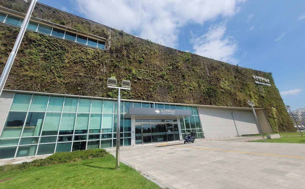오늘은 명지에 있는 국회도서관으로 향했다. 페달을 힘차게 밟으며 자전거를 타고 낙동강을 건넜다. 한국에 온 이후 자전거가 나의 발이 되었다. 반경 10km 이내는 자전거로 이동한다. 가는 길에 미술관을 만났다. 작가가 예술을 지나칠 수 없다. 예술관을 둘러본다. 예술 작품보다 그것을 품고 있는 건물에 더 큰 관심이 간다. 녹색의 덩굴들로 둘러싸인 건물은 친환경을 나타내려는 걸까? 전시관에도 기후변화 환경보전에 관한 예술작품들이 전시 중이다.