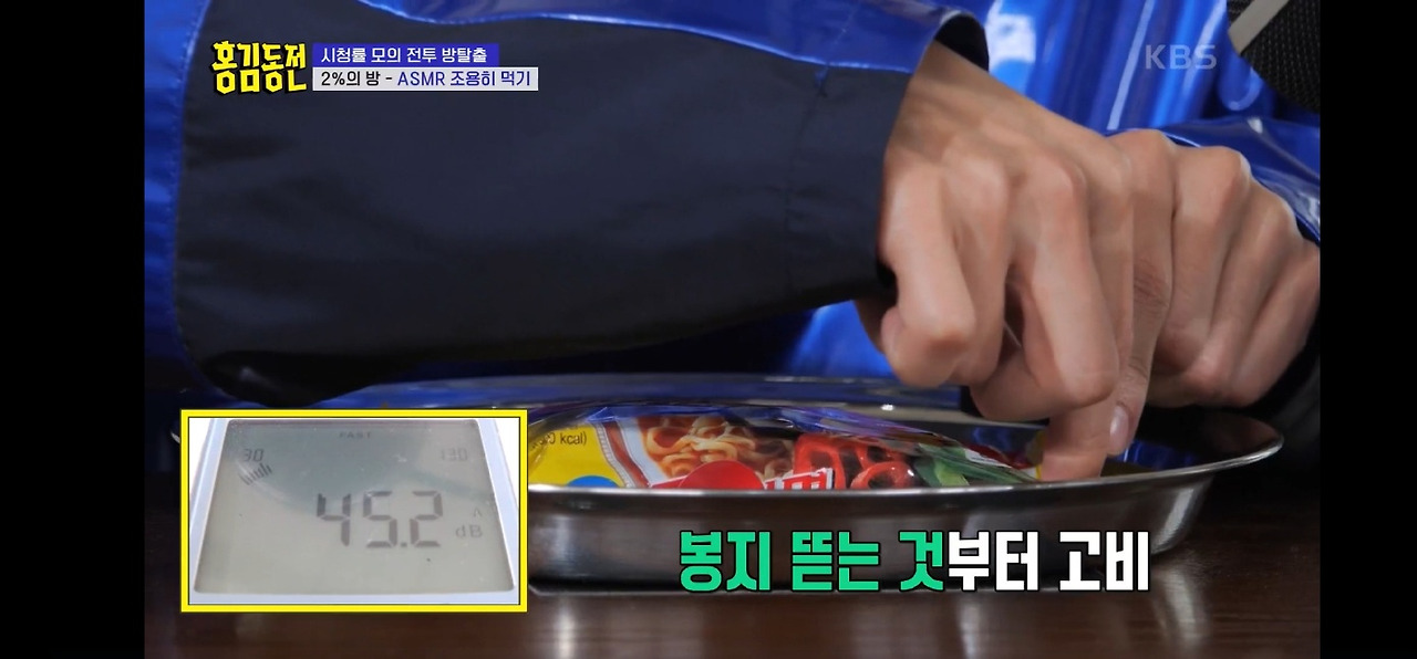 KBS '홍김동전' 60데시벨 이하로 생라면 먹기 도전