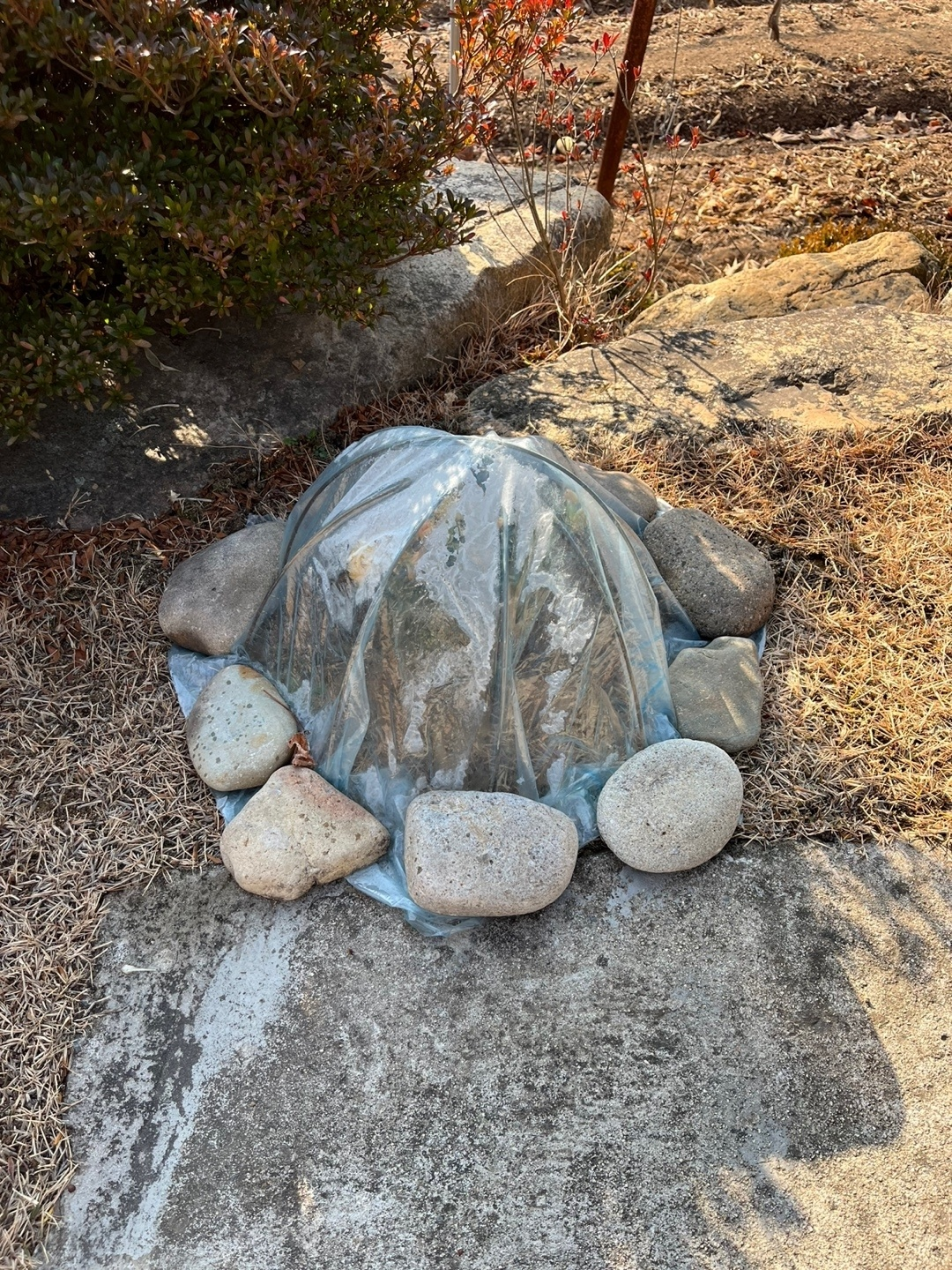 차에서 내려 집 마당으로 들어서는데 화단 한쪽에 정체 모를 뭔가가 시선을 사로잡는다.
