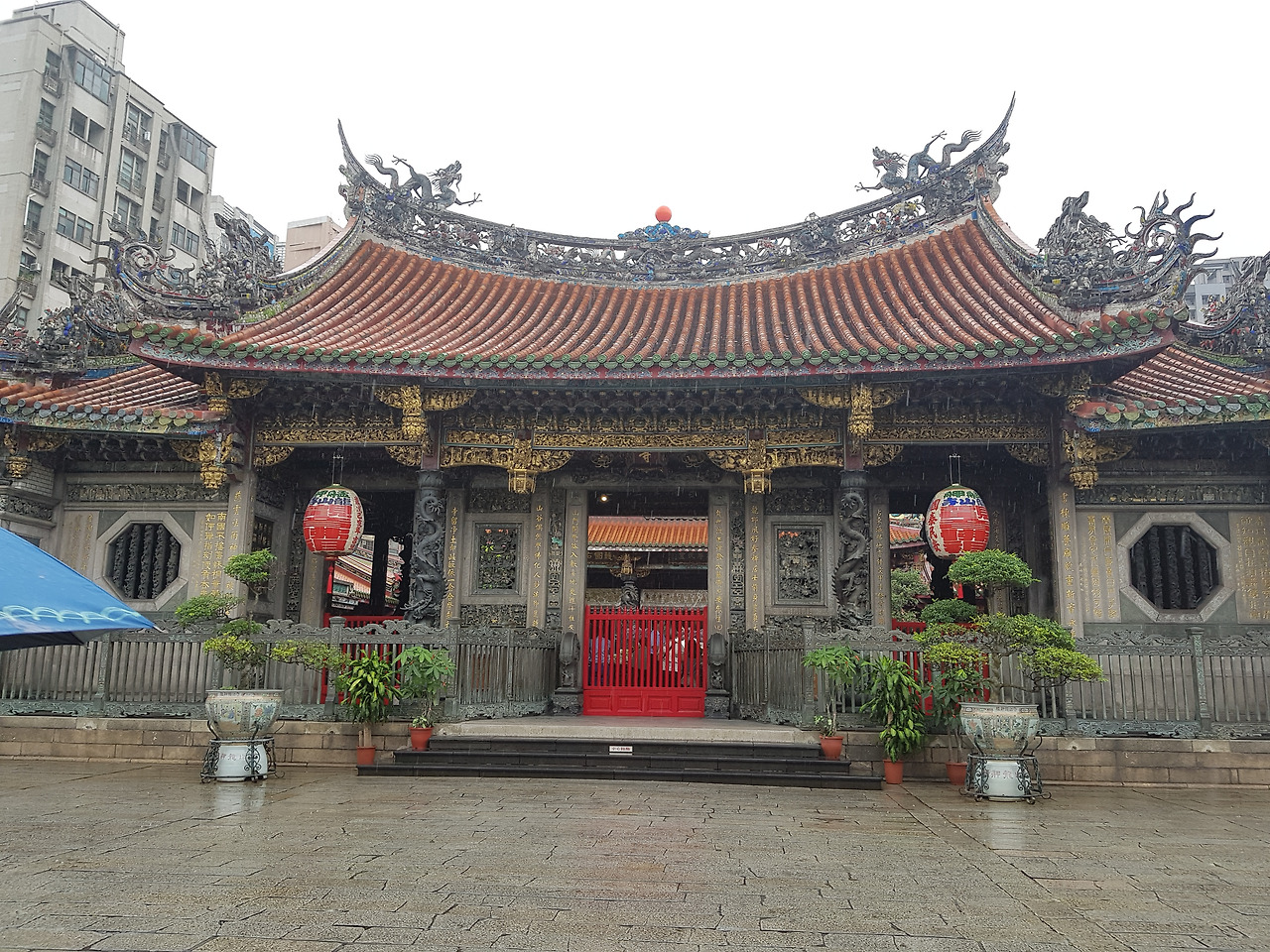 폭삭 젖은 거리를 걸으며 가장 먼저 도착한 곳은 용산사(륭산쓰)였다. 용산사는 내가 묵는 호텔에서 도보로 5분 정도면 걸을 수 있는 가까운 거리였는데 그날에서야 처음 가게 되었다. 용산사는 타이베이에서 가장 오래된 사원으로 소문난 명소였다. 대만 현지 사람들도 중요한 일이 있을 때마다 용산사를 찾아 간절하게 신께 빈다고 한다.