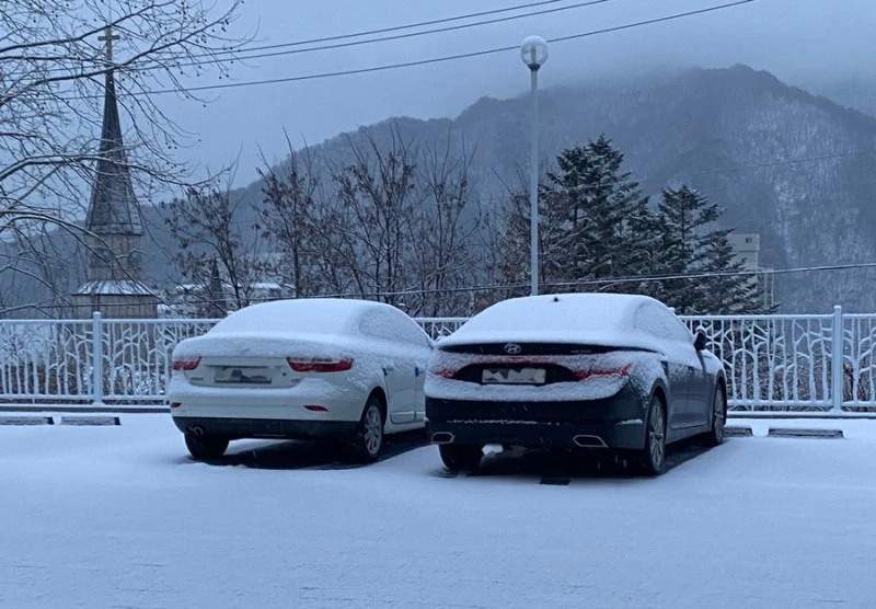 머리에 내리는 눈을 함께 맞아
