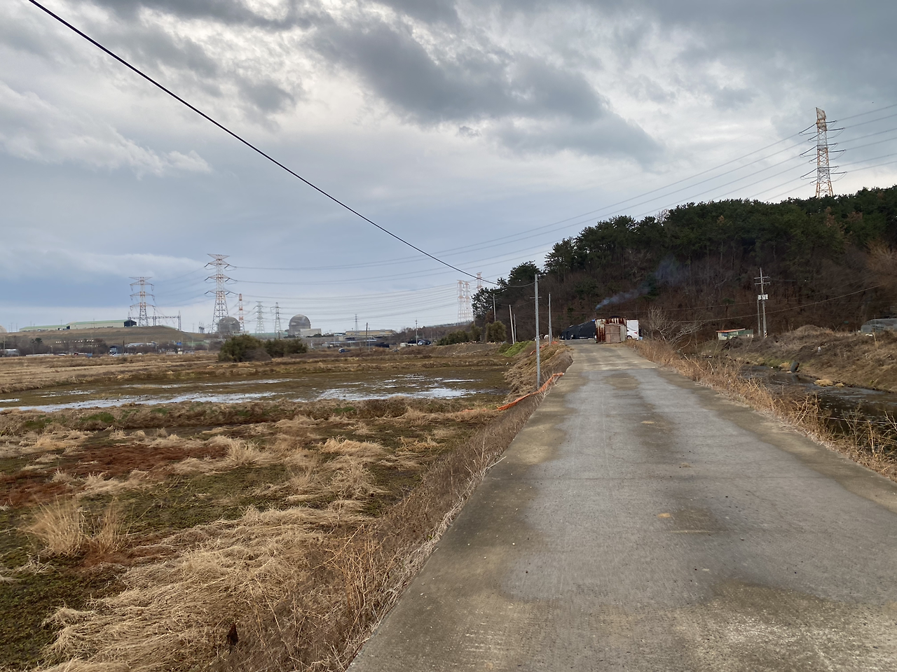 국숫집도 함께하는 민박집 사장님이 차려 주신 계란을 휘휘 푼 떡국을 먹고 8시 30분경에 출발했다. 10시쯤부터 비가 온다는 예보가 있었는데 출발할 때부터 가는 비가 몇 방울씩 떨어지는 게 보여서 우의를 꺼내 입었다. 원자력 발전소 주변이거나 원자력 발전소를 건설하는 곳을 지나는 구간이라 봉태산 숲길을 지나 나사 해변으로 가는 길은 화려한 볼거리가 많지는 않았다. 그렇지만 밀양 송전탑 반대 시위하던 어르신들은 그 후 어떻게 되었을까, 우리가 예전에 비해 전기를 정말 많이 쓰고 있지 않냐는 대화가 자연스럽게 이어지게 만드는 길이었다.