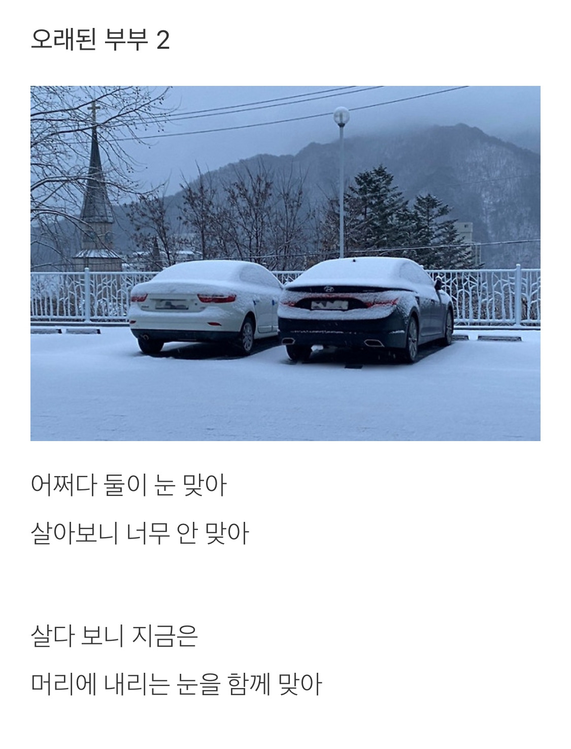 ”야야, 니들 부부는 어째 자꾸 닮아가냐, 니 얼굴 보는데 김서방 얼굴 보는 거 같다야, 분위기가 점점 닮아가네”