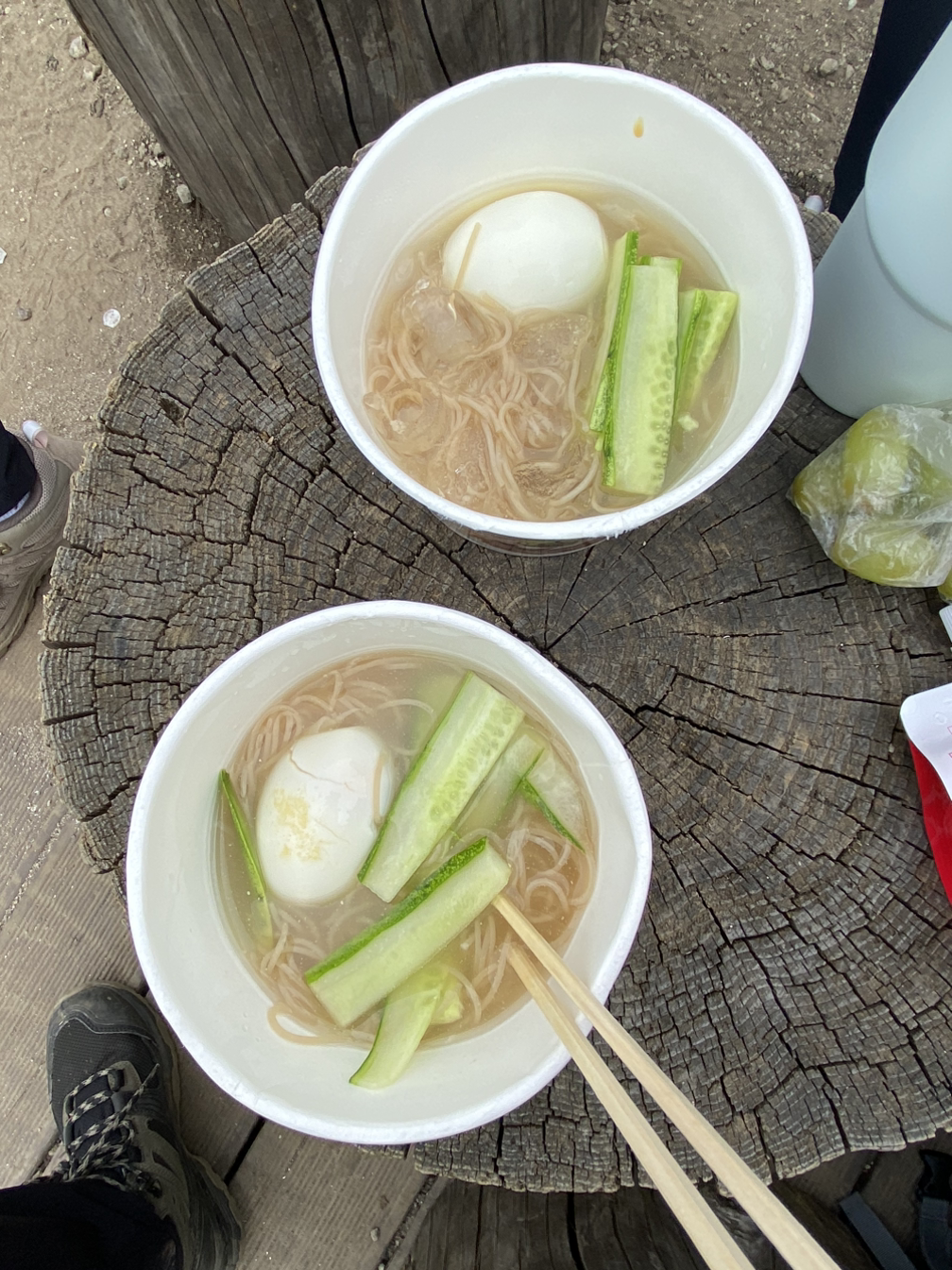 치악산 정상에서 뭔가 엄청난 걸 먹어야 한다고 B가 말했다. 엄청난 게 뭐가 있을까 생각하다가 둘 다 냉면을 떠올렸다. 컵냉면을 먹기로 했다. 주중에 인제의 세븐일레븐에서 컵냉면을 사서 연습 삼아 먹어보니 맛이 썩 괜찮았다.