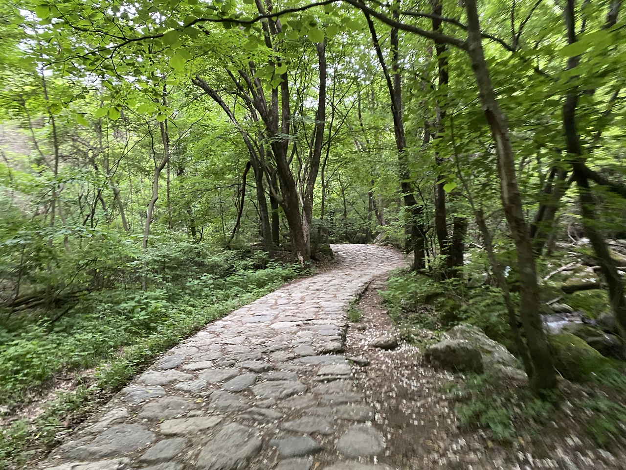 어느 순간부터 시간은 빠르게 흐르는데 거리는 좀처럼 줄지 않는 꿈속 같은 몽롱한 느낌이 들었다. 가도 가도 상원사는 나오지 않고, 상원사가 나오려면 남대봉이 먼저 나와야 하는데 남대봉은 도대체 언제 나타나는 거야. 그러다 소박하기 그지없는 생뚱맞은 남대봉 표지석을 만났을 때, 남대봉 아래 그림 같은 상원사를 만났을 때 얼마나 반가웠는지. 이제 살았다 싶었다.