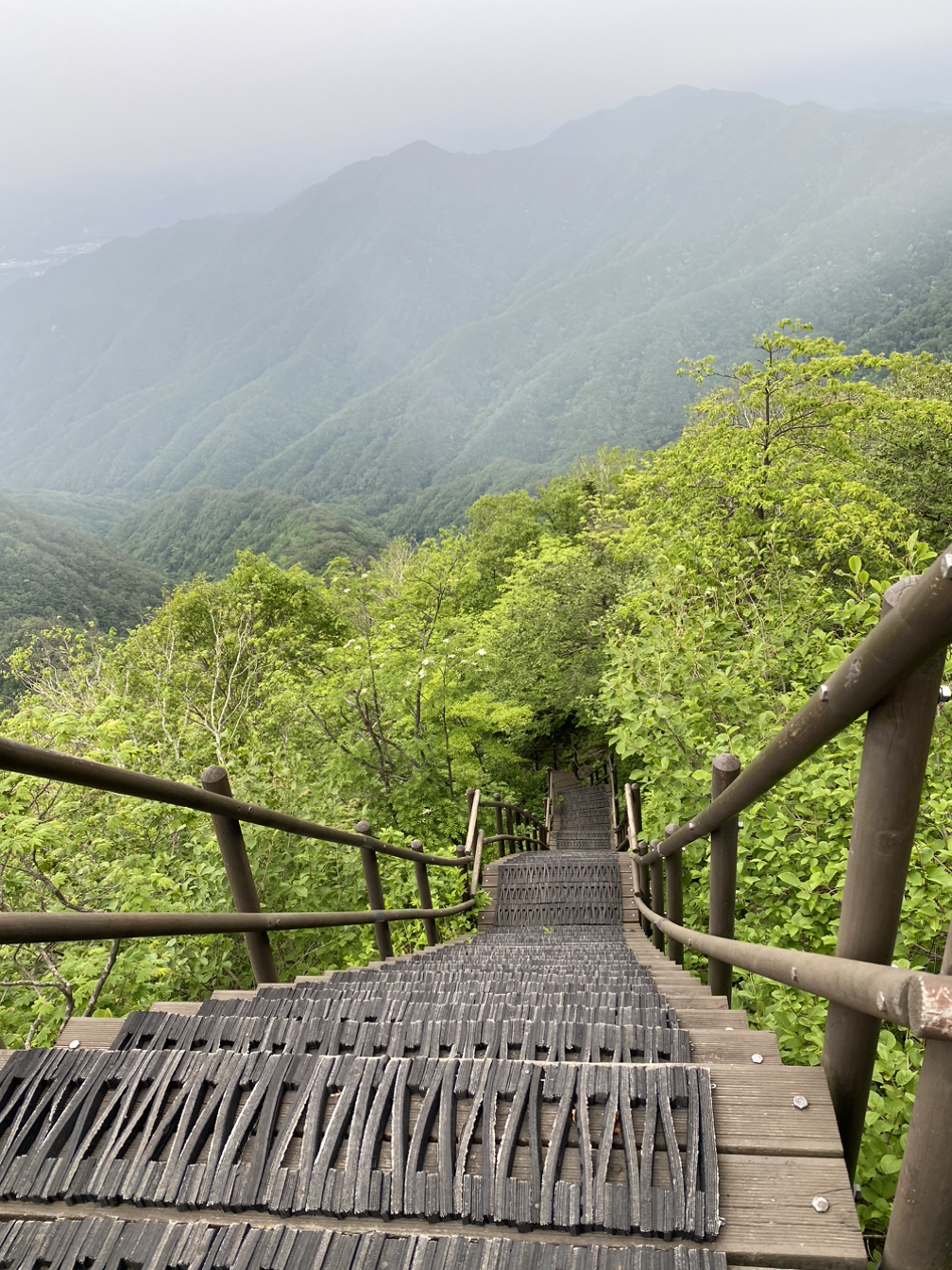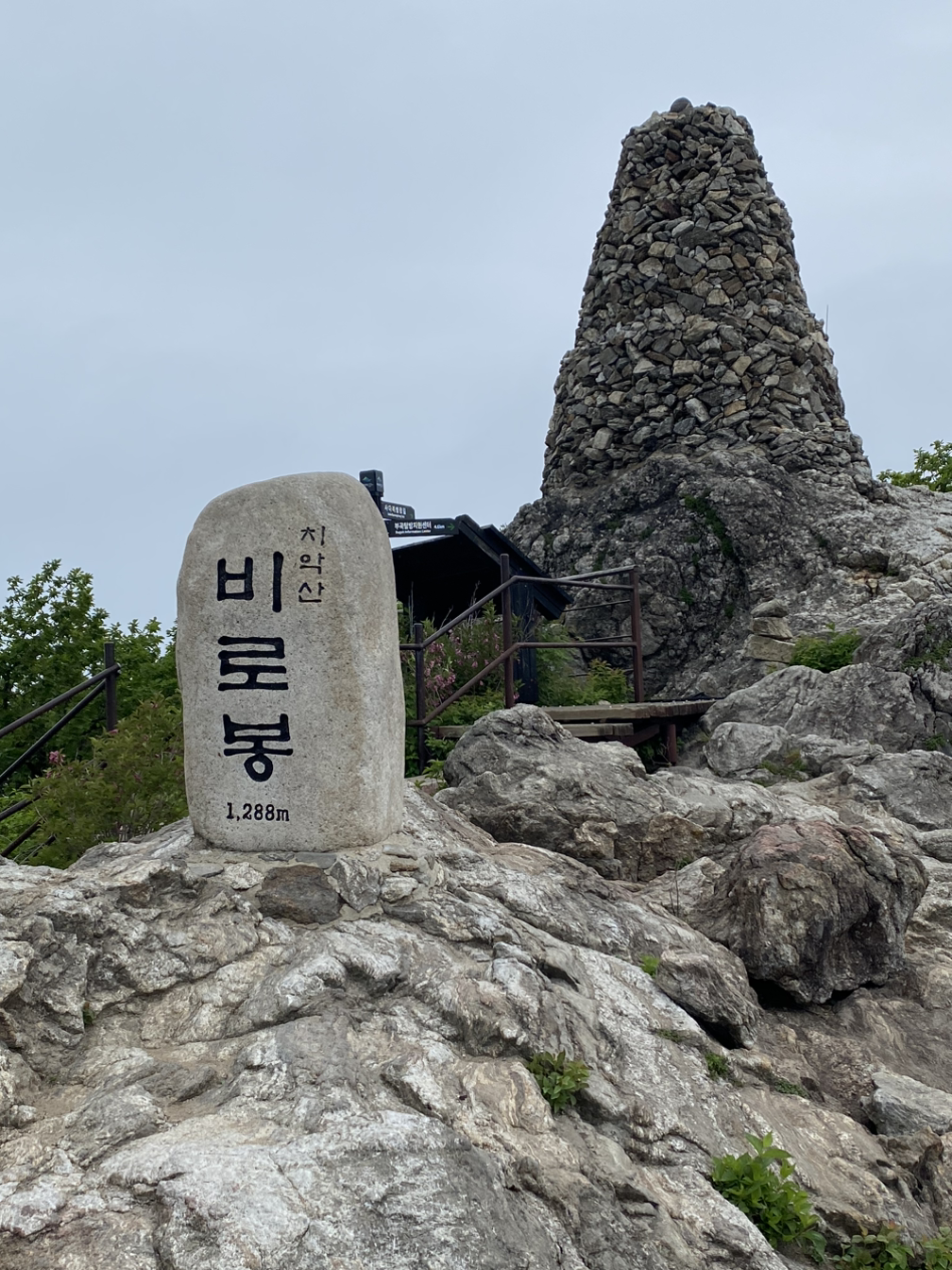 구룡사에서 세렴폭포까지는 가뿐하고 좋았다. 세렴폭포 다리를 건너서부터 시작되는 사다리병창은 워낙에 각오를 하고 왔기 때문에 그러려니 했다(나는 사다리병창을 20대에 한번, 30대에 한번 올라간 적이 있고 B는 처음이었다). 가파른 계단에 다리가 후들거리기도 했지만 날이 흐리고 시원해서 걷기에 좋았다. 출발한 지 3시간 10분 만에 비로봉 정상에 올랐다. 쉬엄쉬엄 걸었는데도 생각보다 일찍 도착했다.