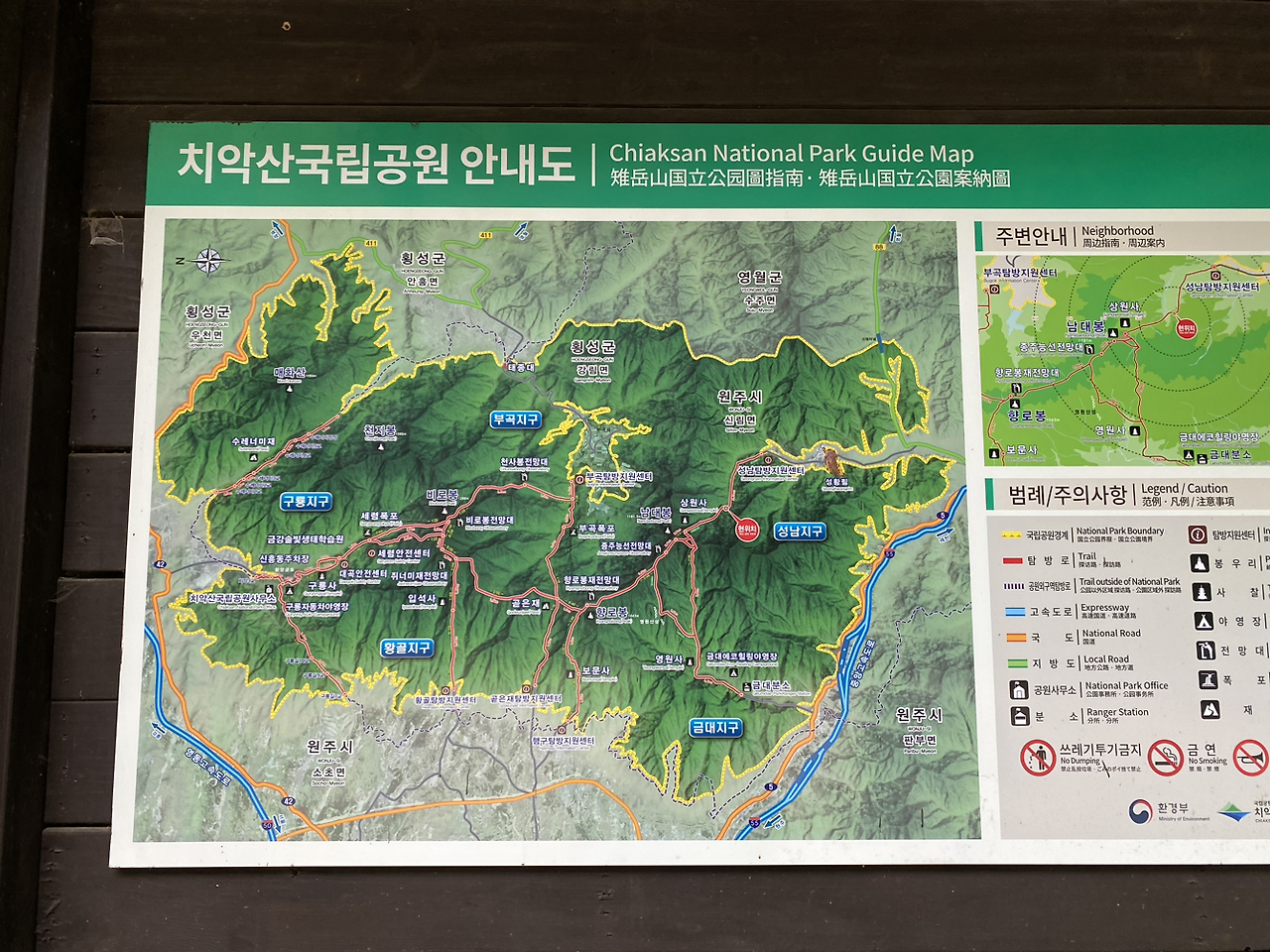 인터넷을 대충 찾아보고 성남탐방지원센터에서부터 구룡탐방지원센터까지 치악산 종주에 빠른 사람은 8~9시간, 보통은 10시간 정도면 되는가 보다 생각했다. 우리는 구룡사 입구에 차를 세우고 걷기 시작해서 상원골 주차장에서 마칠 테니까 1시간 이상은 절약할 수 있을 것이고 그럼 천천히 걸어도 10시간 정도면 될 거라 생각했다.