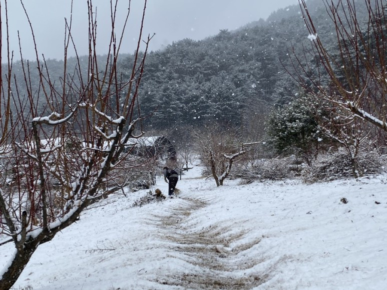 여게로 대니는 선생님들 대니다가 넘어지면 안 되잖아, 하시며 눈을 쓸고 계십니다.