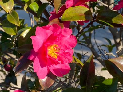 이기대를 걸을 때도 이기대를 벗어나 시내를 걸을 때도 곳곳에 해파랑길 표지판과 해파랑길을 알리는 리본이 달려 있어서 어렵지 않게 길을 찾을 수 있었다. 이기대를 지나 시내 쪽으로 내려와 걸을 때는 위쪽 지방에서는 보기 어려운 동백꽃이 많이 보였다. 위쪽 지방에서는 동장군과 싸우고 있을 때 아래쪽에서는 이렇게 붉은 동백꽃을 볼 수 있다니 따뜻한 남쪽에 사는 사람들이 부럽다는 생각이 잠시 들었다. 그렇지만 부산 사람들도 한겨울 인제의 설경을 본다면 분명히 부러워할 것이라는 생각도 함께 들었다.