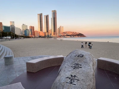 광안리 해수욕장을 지나 5시 30분경에 해운대 해수욕장 근처에 도착했다. 해운대 해수욕장 옆에 동백섬이 코스에 있었지만 몇 년 전에 남편과 동백섬을 돌아본 적이 있어서 k가 간다면 나는 입구에서 기다려야겠다고 생각할 정도로 다리가 아팠다. 같은 마음이었던지 k도 남편과 동백섬을 다녀왔다며 안 가도 된다고 했다. 하루 전날 부산에 미리 와서 자고 아침 일찍부터 걷기 시작했다면 힘들더라도 걸었을 텐데 둘 다 새벽에 출발하여 점심때부터 걷기 시작한 몸으로는 무리였다.