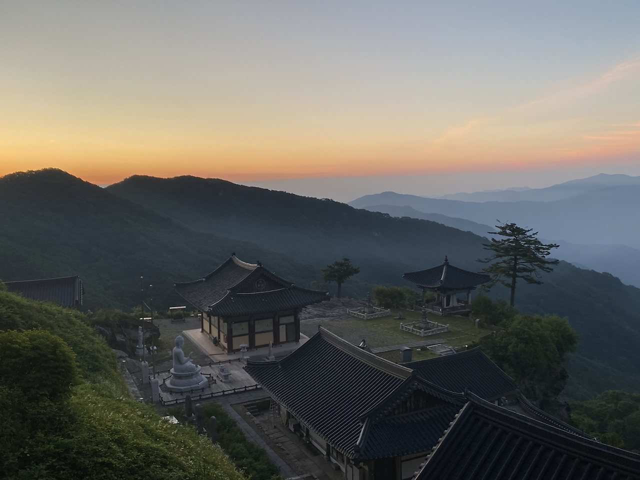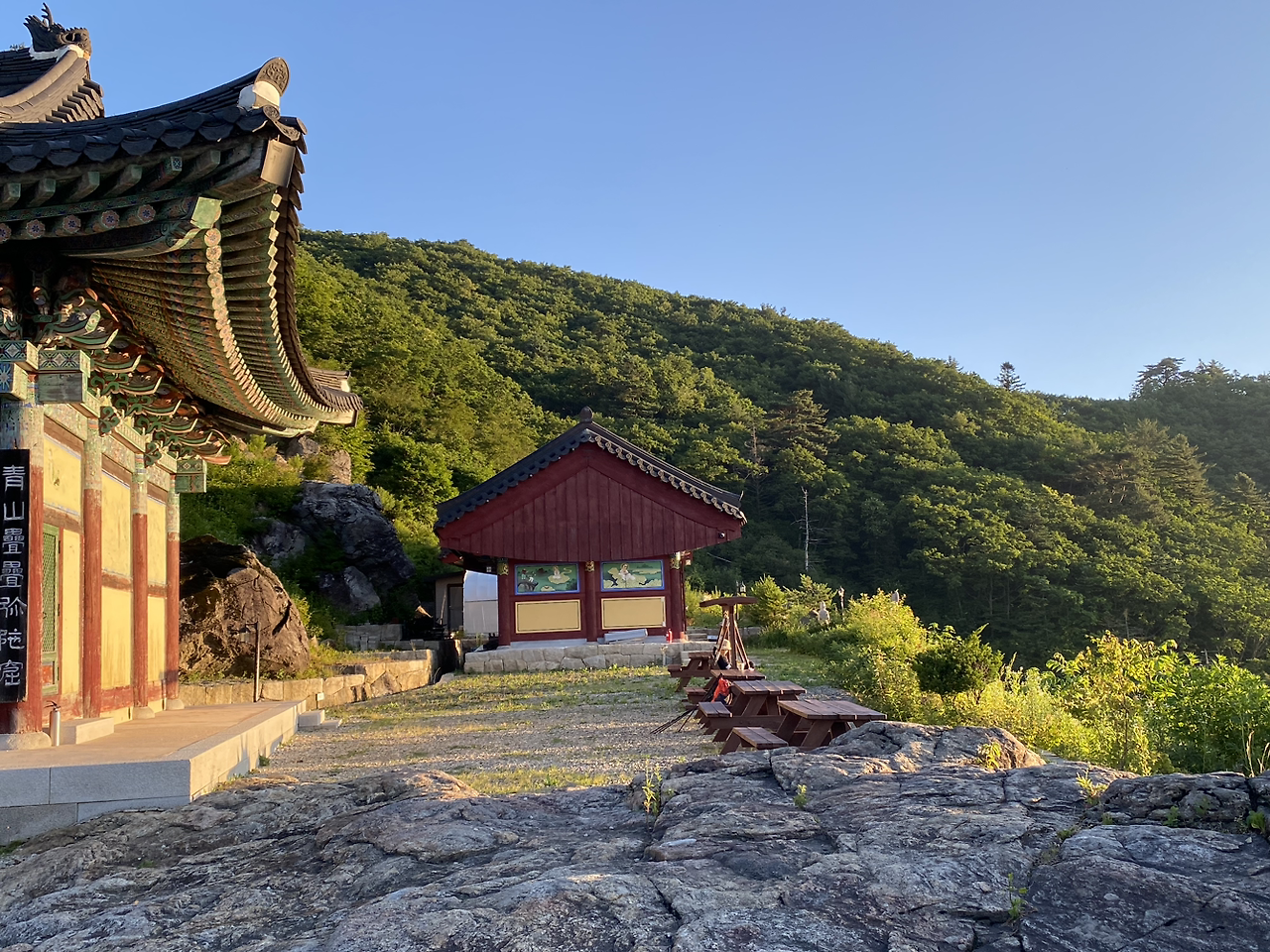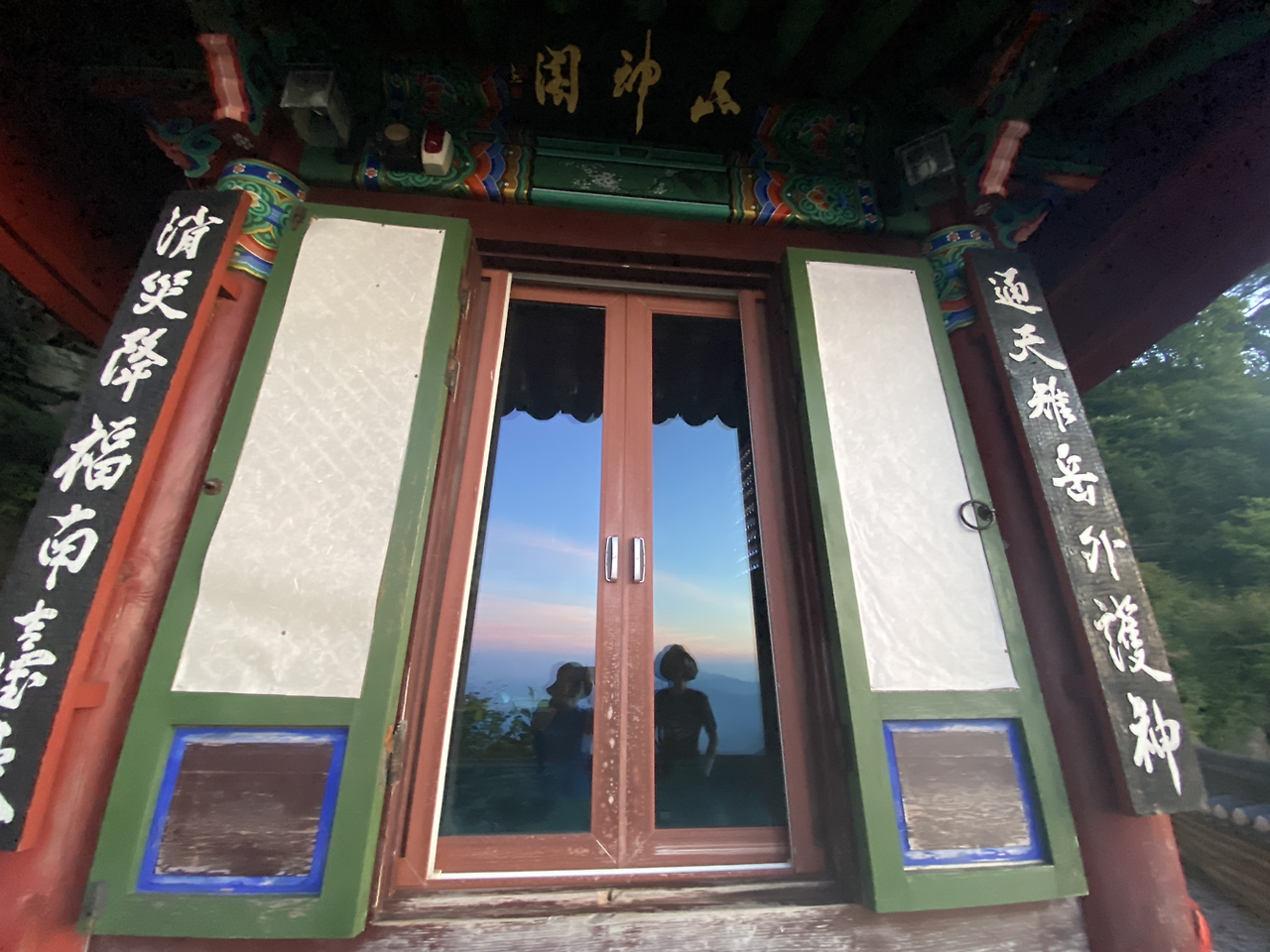 우리나라에서 세 번째(1등은 지리산 법계사, 2등은 설악산 봉정암)로 높은 곳에 있는 사찰이라는 상원사, 그중에서도 가장 높은 곳에 위치한 산신각에 올라가서 일출을 기다렸다. 일출 장면을 놓칠까 봐 쉬지 않고 걸은 덕분에 일출시간까지는 20분 정도 여유가 있었다. 느긋하게 쉬면서 해뜨기 전 풍경을 감상하고 싶었다.