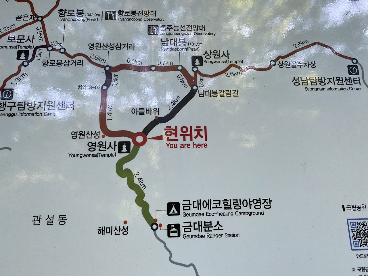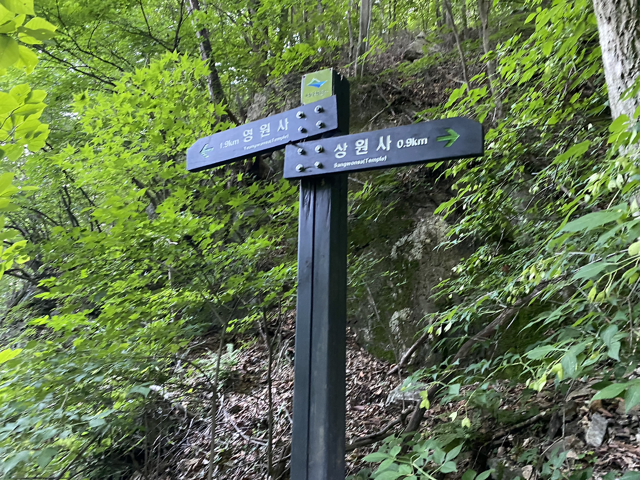 5시 52분에 상원사에서 영원사로 출발했다. 이른 시간이어서 그런지 영원사로 내려오는 동안 등산객을 세명밖에 만나지 못했다. 8시 6분에 영원사 앞에 도착했다. 예상보다 빠른 도착에 당황스러웠으나 안내 지도를 보자마자 바로 이해가 되었다.