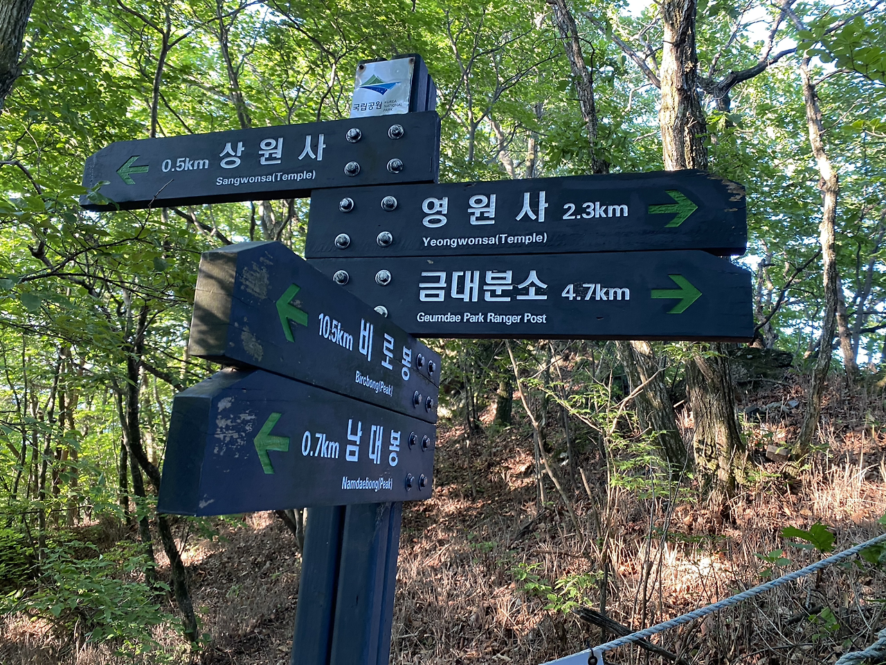 원래는 <상원사-남대봉갈림길-남대봉-종주능선전망대-영원산성삼거리-영원산성-영원사>로 갈 계획이었으나 남대봉 갈림길에서 영원사 푯말을 보고 <상원사-남대봉갈림길-영원사> 이렇게 바로 내려온 것이었다.