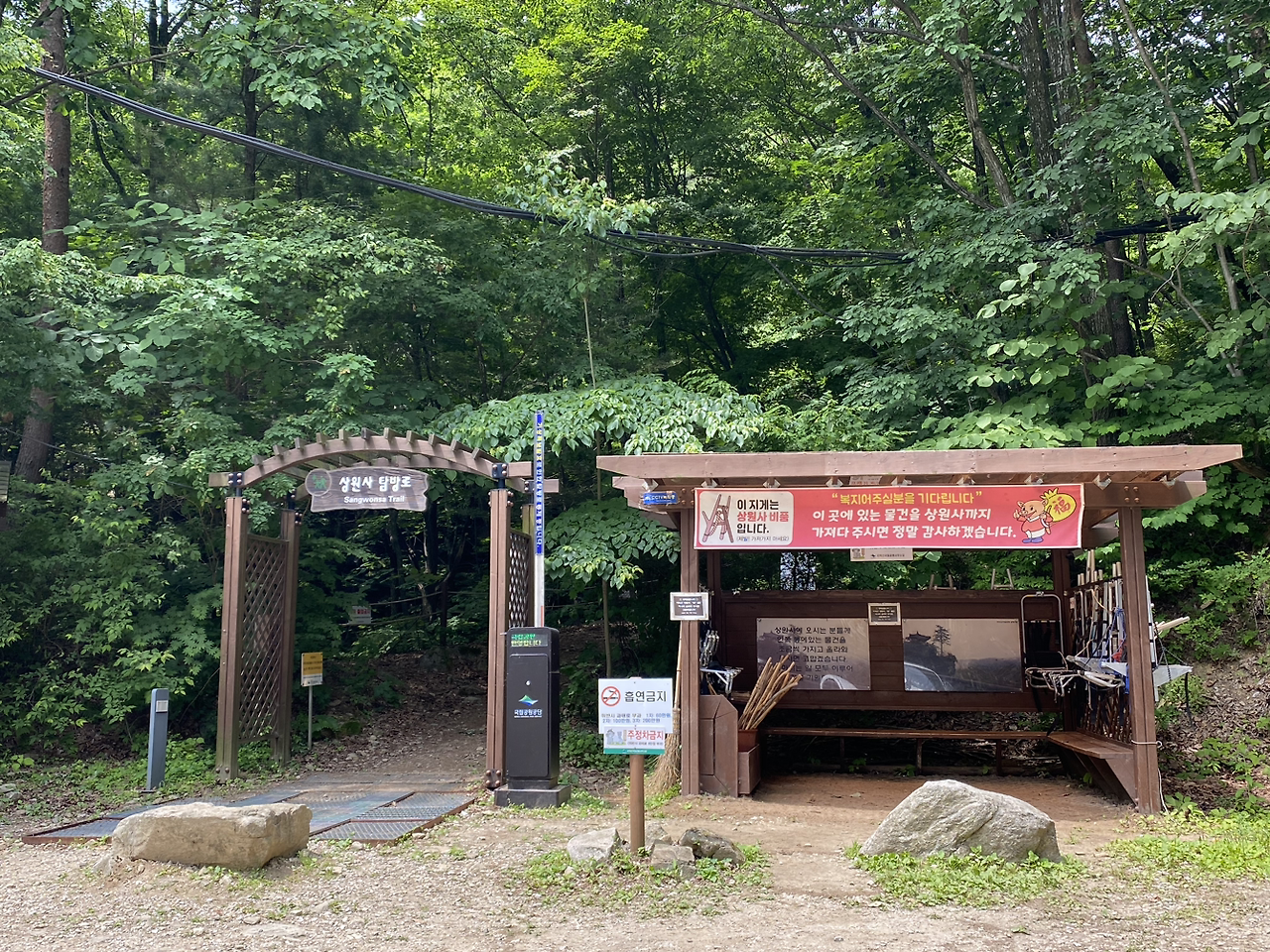 아침을 먹으려고 공양간 앞으로 가니 전기포트가 없었다. 지난번 치악산 종주 때 밖에 놓인 전기포트와 컵라면 드실 분은 야외 탁자에 가서 드시라는 안내글을 봐서 컵라면을 챙겨 왔던 것이다. 공양간 창문 쪽으로 가서 기웃거려서 아까 인사를 나눴던 보살님과 눈을 맞췄다.